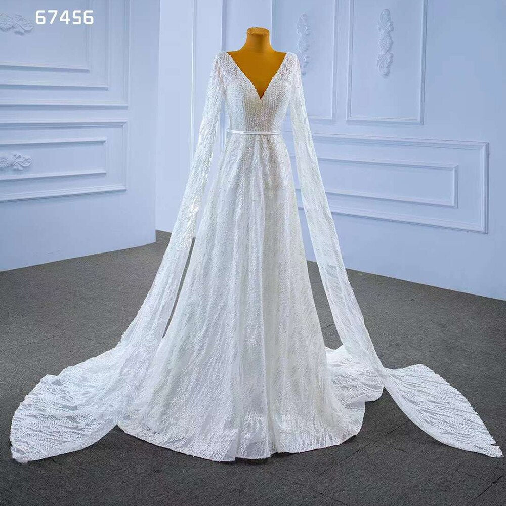 White Cape Sleeves Luxury Lace Beaded V Neck Lace Up Bride Gowns Wedding Dress 2025 High End Custom Made HM67456