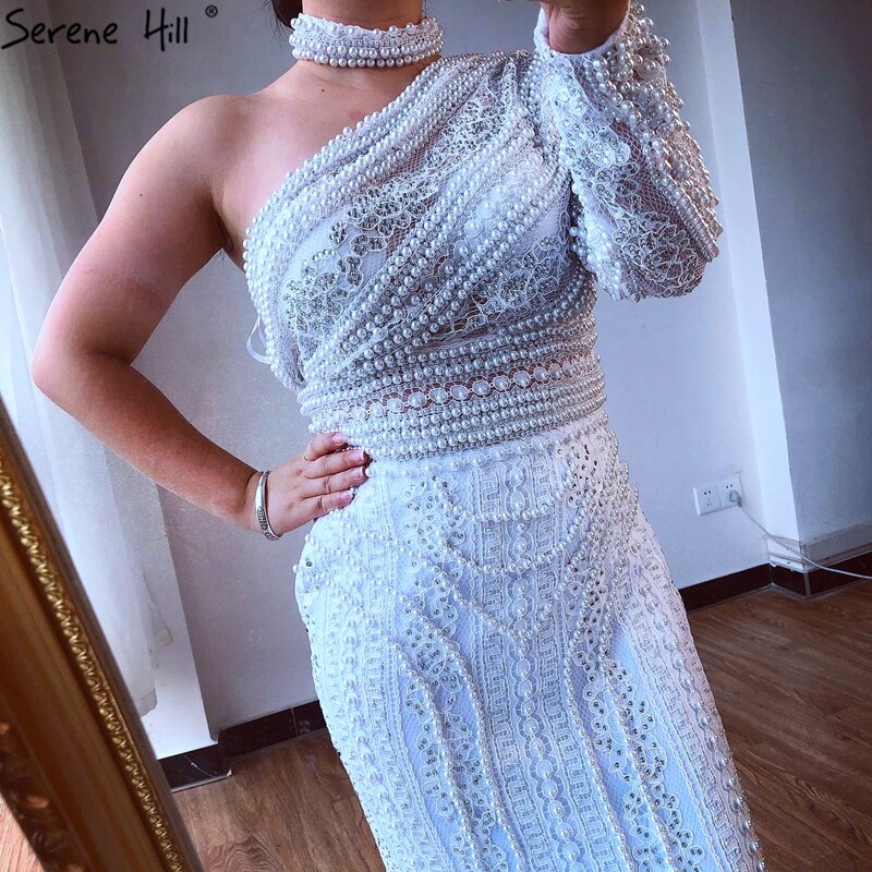 White High Collar One Shoulder 2025 Pearls Lace Party Wear Luxury Mermaid Evening Formal Dresses For Women LA70462