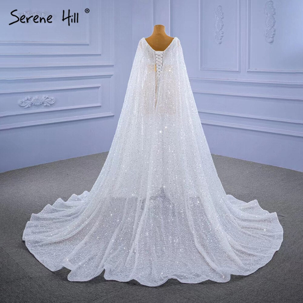 White High-end Luxury Evening Dresses Gowns 2025 Beaded Feather Cape Sleeve For Women Party HM67305