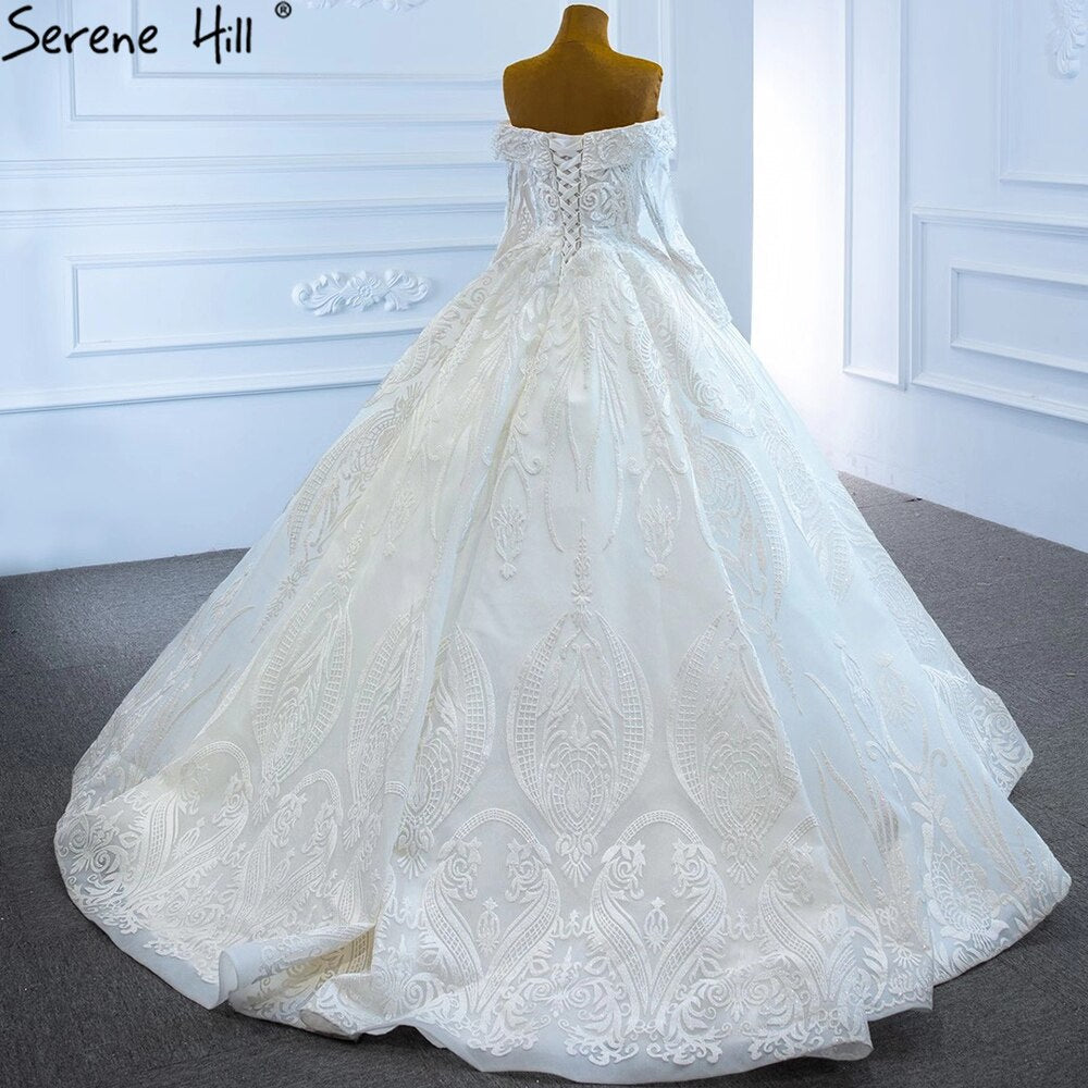 White Off Shoulder Sexy Wedding Dresses Gowns Luxury Beading Pearls Lace Up Bridal Dress 2025 HM67206 Custom Made