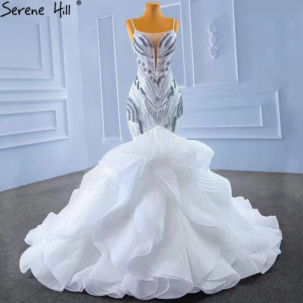 White Ruffles Beaded Luxury Wedding Dresses Gowns 2025 Spaghetti Straps Mermaid Elegant Bridal Dress HM67386