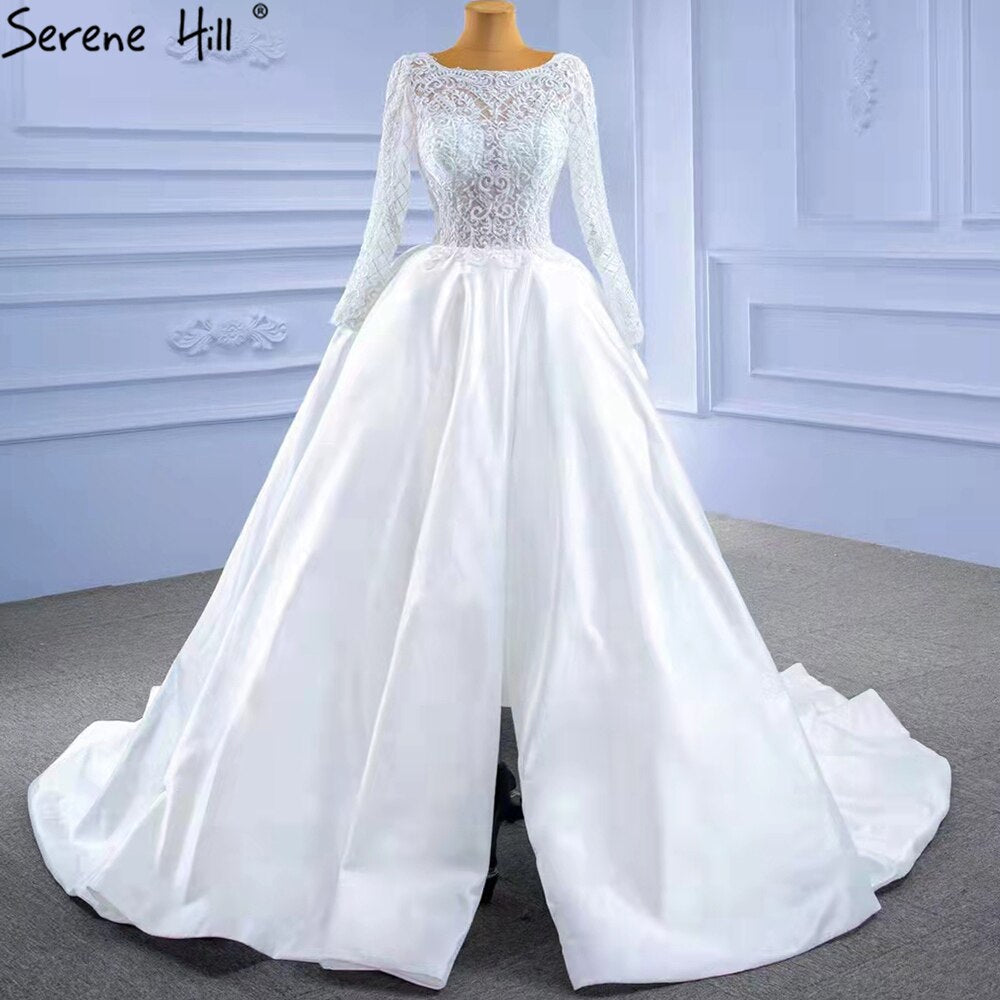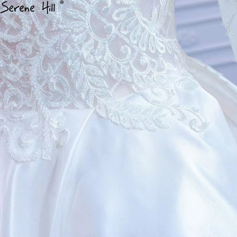 White Satin High Split Wedding Dresses 2025 A-Line Lace Beaded Bride Gowns HM67292 Custom Made