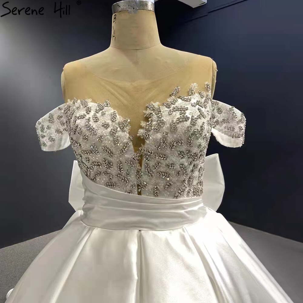 White Satin Lace Up Wedding Dresses 2025 Beaded Bow High-end Bride Gowns HM67412 Custom Made