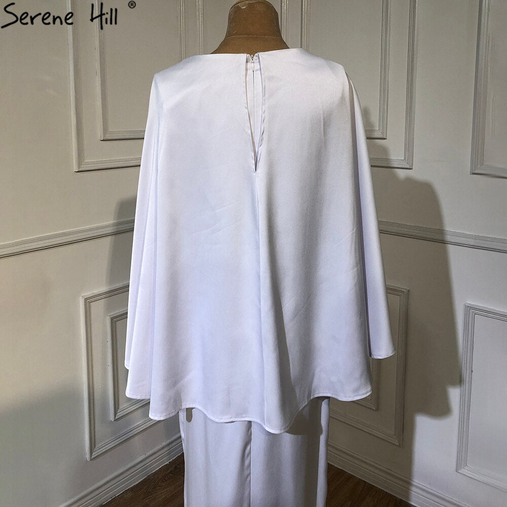 White Satin Mermaid Evening Dresses Gowns 2025 Batwing Sleeves Ankle Length For Women Party LA70681