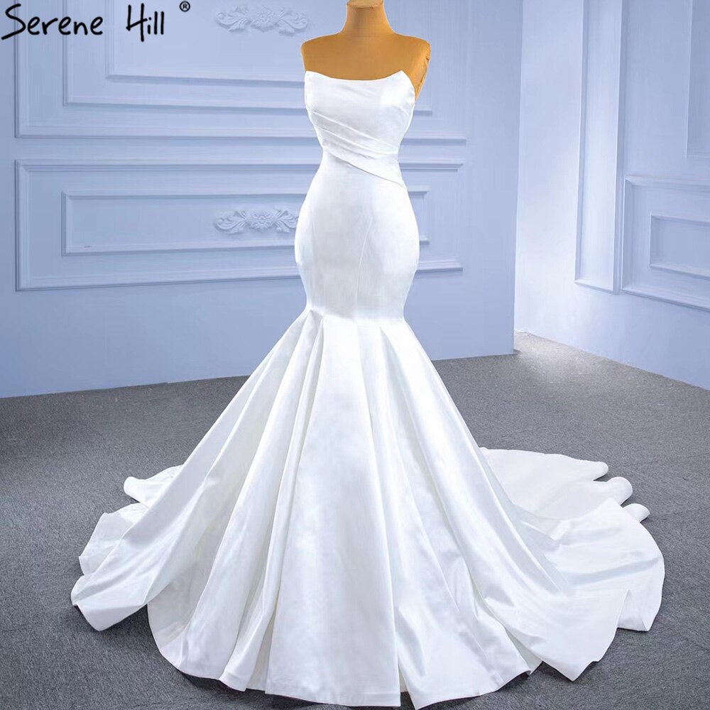 White Satin Mermaid Wedding Dresses 2025 Simple Elegant Sexy Bride Gowns HM67297 Custom Made