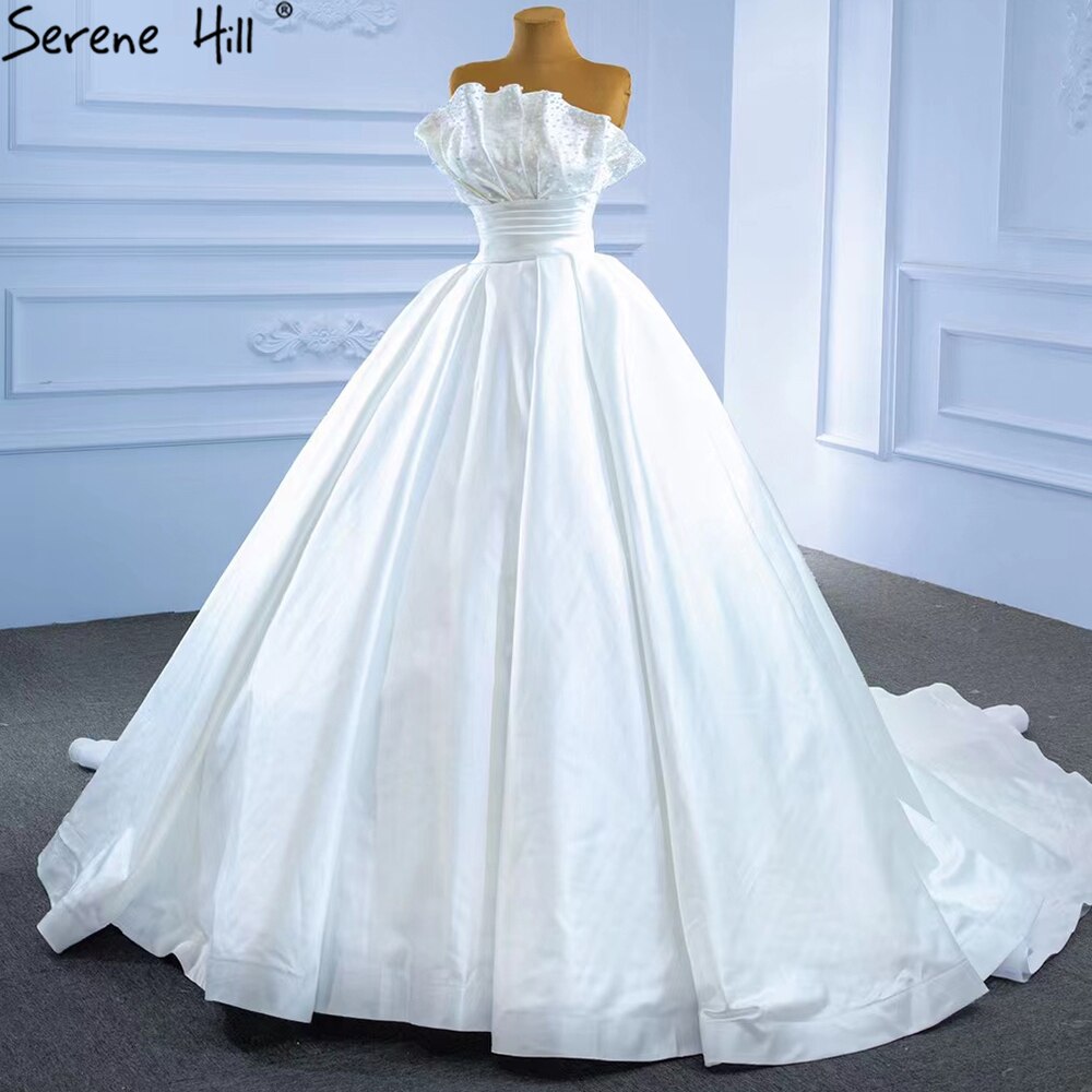 White Satin Sexy Wedding Dresses 2025 High-end Beaded Pearls Bridal Dress HM67267 Cusotm Made