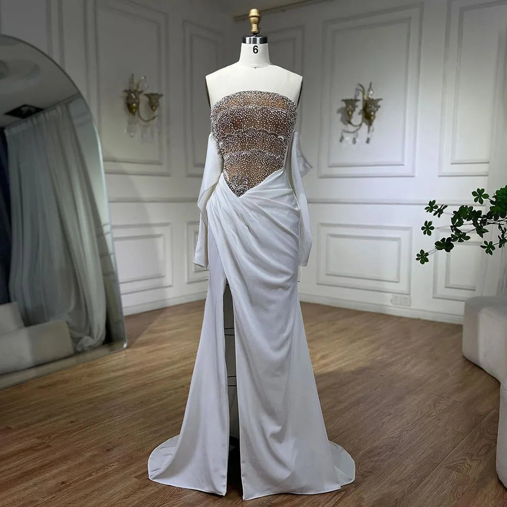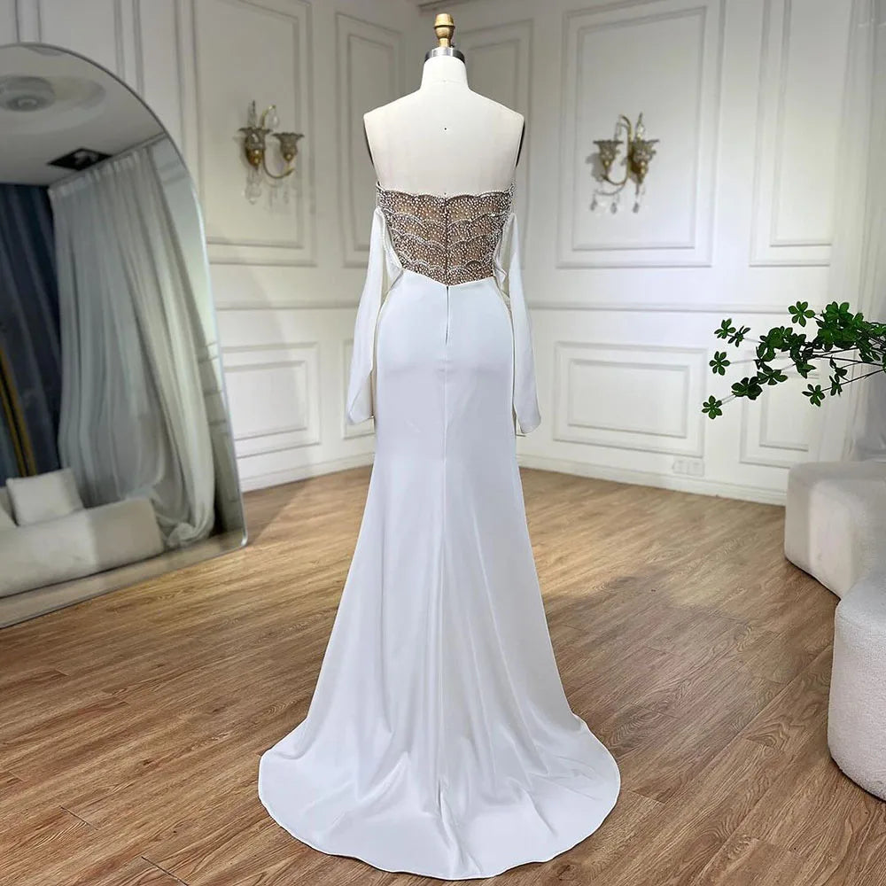 Luxury Dubai Mermaid White Evening Dress Sexy Scalloped LA72293