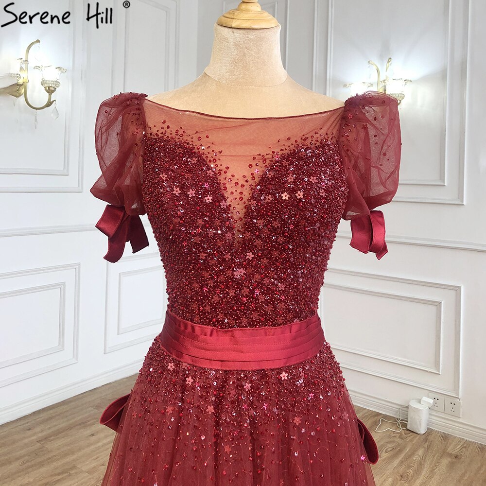 Wine Red A-Line Evening Dresses Gowns 2025 Beaded Bow Puffy Sleeves For Women Party LA71281