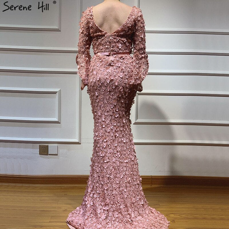 Sale Sexy V-Neck Blush Pink Mermaid Evening Dresses 2025 Handmade Flowers Long Sleves Evening Gowns LA60774