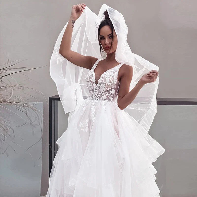 Sexy V-neck Double Shoulder Wedding Dresses White Sleeveless Bohemian Formal Beach Wedding Party Bridal Gowns 2023 Backless Robe