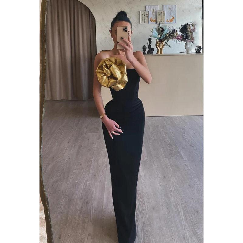 Sheath/Column Off-Shoulder Long Sleeves Evening Party Prom Dress With Flower