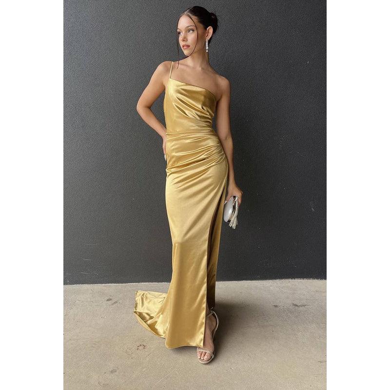 Sheath/Column One Shoulder Satin Pleats Backless Sleeveless Evening Dress