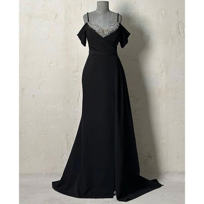 Sheath/columnoff-shoulder Straps Beaded Pleats Formal Evening Dress