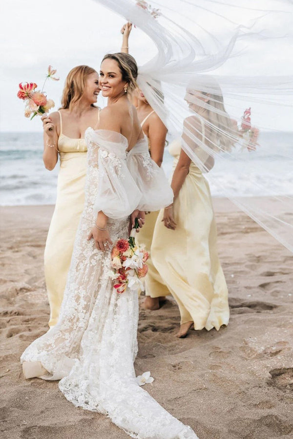 This Sheath Spaghetti Straps Long Yellow Bridesmaid Dress is both cheap and stylish. With its vibrant yellow color and flattering silhouette. it's perfect for bridesmaids of all ages. Add a touch of sunshine to any wedding with this junior bridesmaid dress.