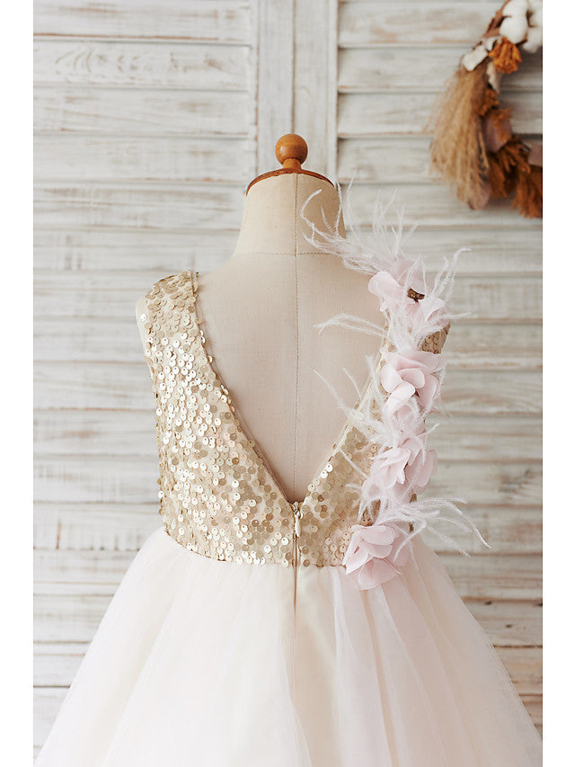 Short Ball Gown Tulle Sequined Wedding Birthday Flower Girl Dresses