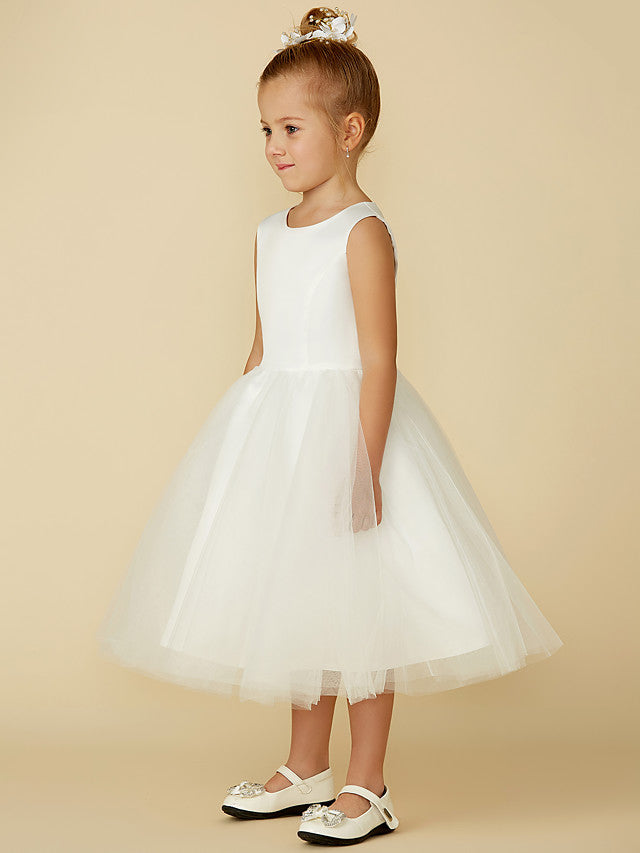 Short Princess Satin Tulle Wedding First Communion Flower Girl Dresses