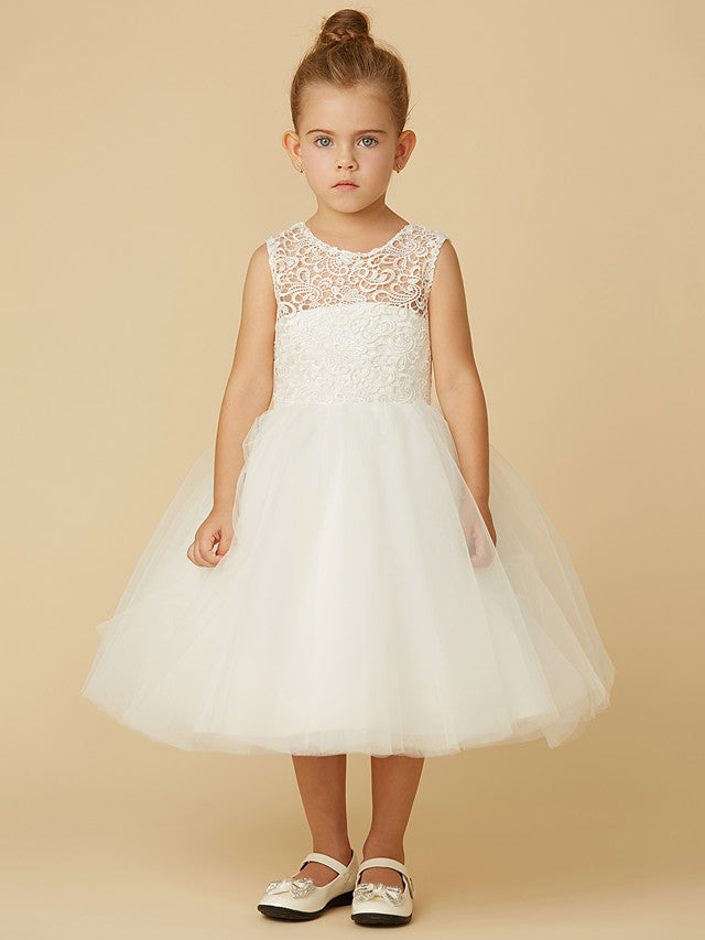 Short Princess Tulle Jewel Neck Wedding First Communion Flower Girl Dresses
