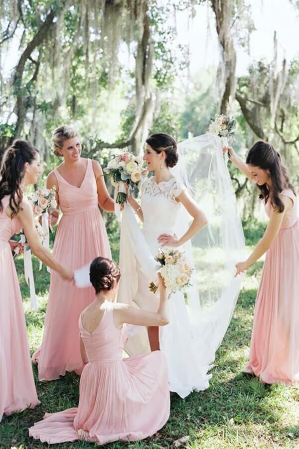 Chiffon A-line V-neck Floor Length Cheap Bridesmaid Dresses