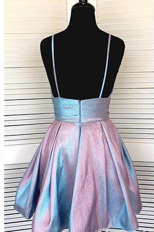 Spaghetti Strap Formal Dress Short V-neck Homecoming Dresses .