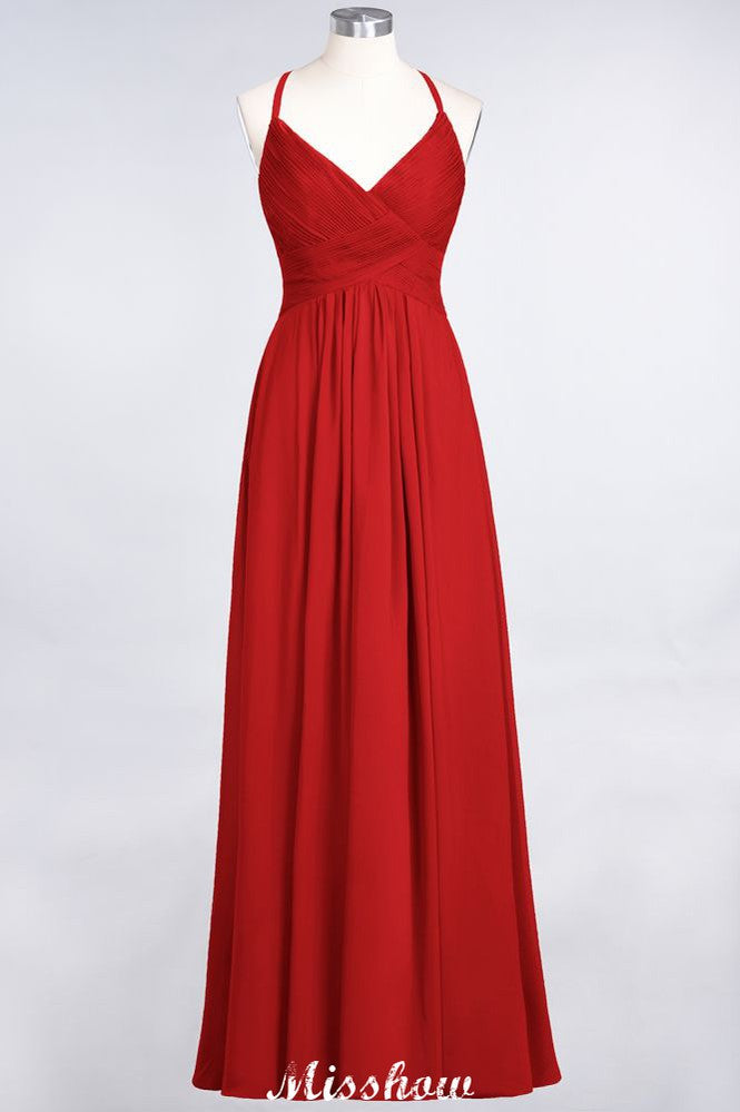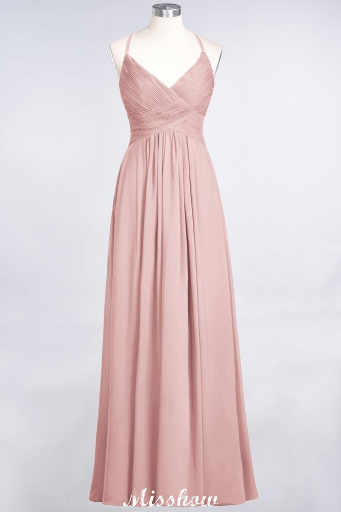 Spaghetti-Straps V-Neck Sleeveless Floor-Length Bridesmaid Dress