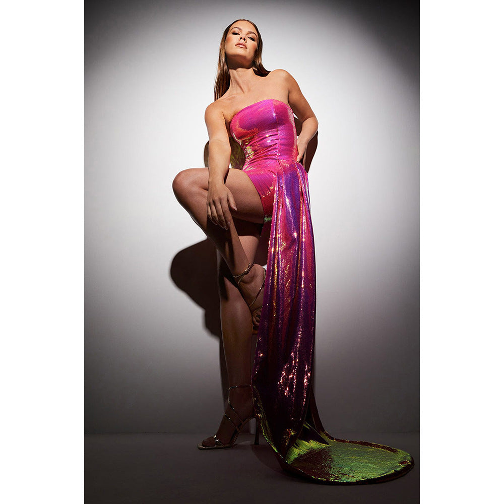 Strapless Sequin Wrap Waist Two Piece Prom Dress