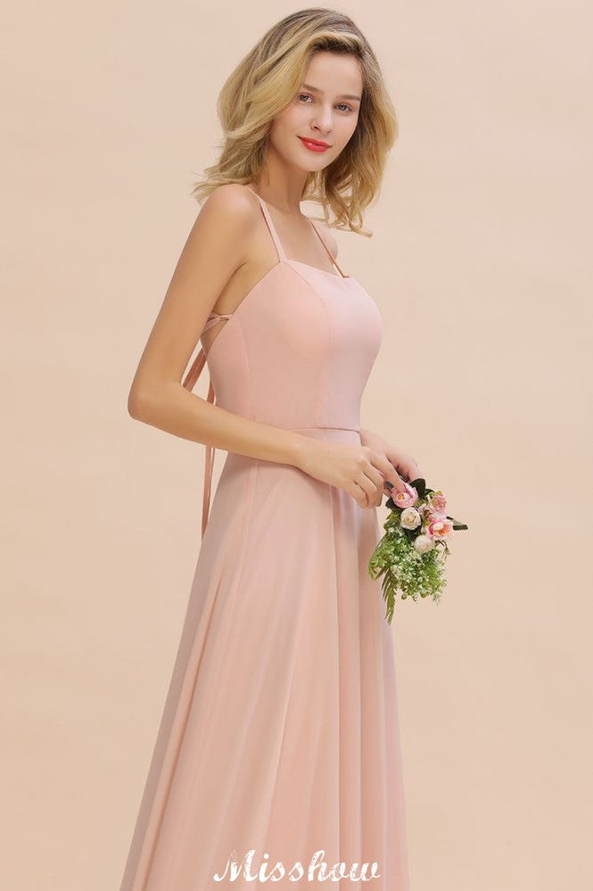 Stylish Chiffon Straps Sleeveless Floor-Length A-Line Ruffles Bridesmaid Dress