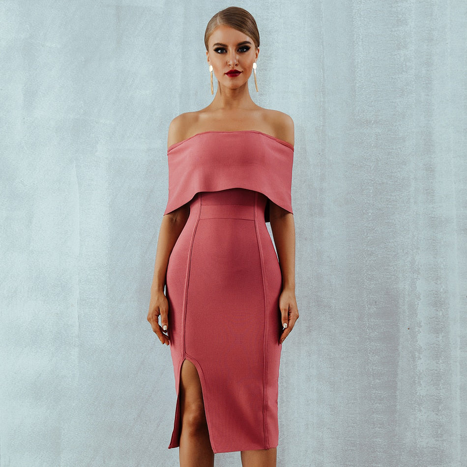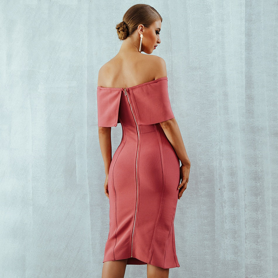 Summer Woman Bandage Dress Slash Neck Bodycon Off Shoulder Midi Club Dress Celebrity Evening Party Dress Vestidos