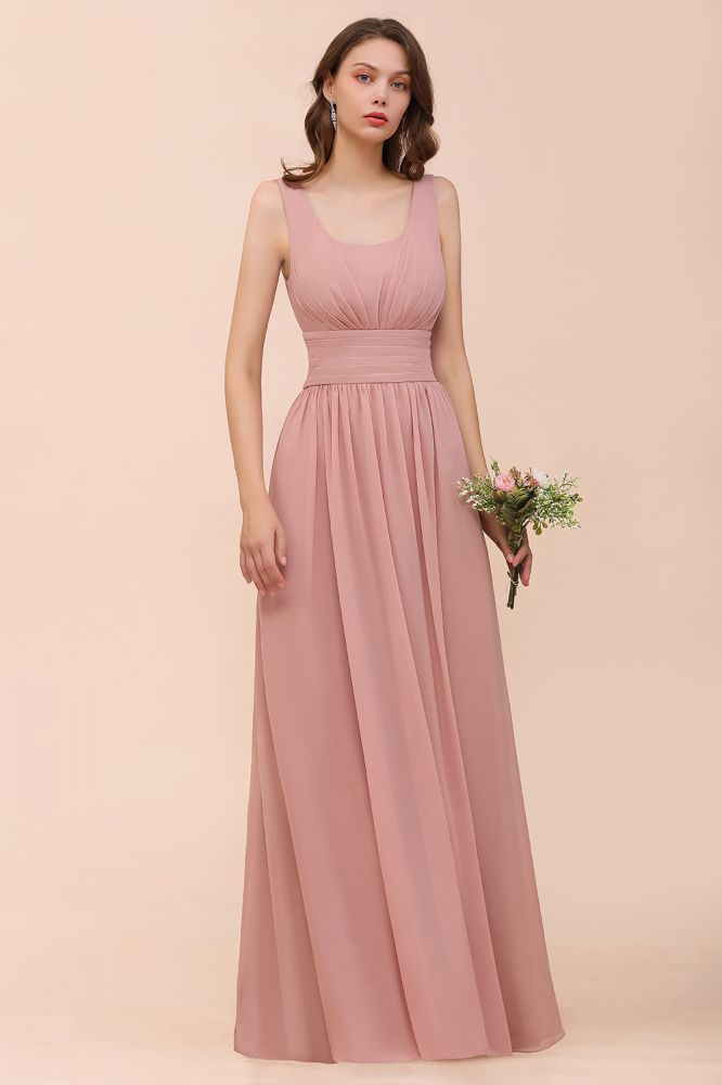 U-Neck High Waist Bridesmaid Dress Long Chiffon Formal Party Dress