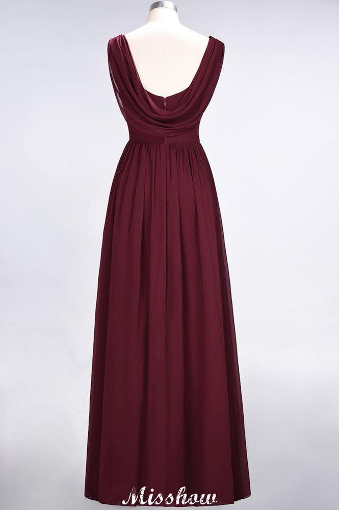 V-Neck Sleeveless Floor-Length Bridesmaid Dress Aline Ruffles Chiffon Party Gown