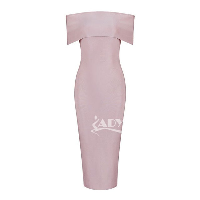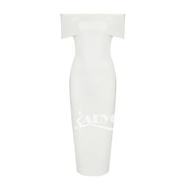 White Celebrity Runway Bandage Dress Women Black Red Sexy Off Shoulder Midi Bodycon Evening Party Dress Vestido