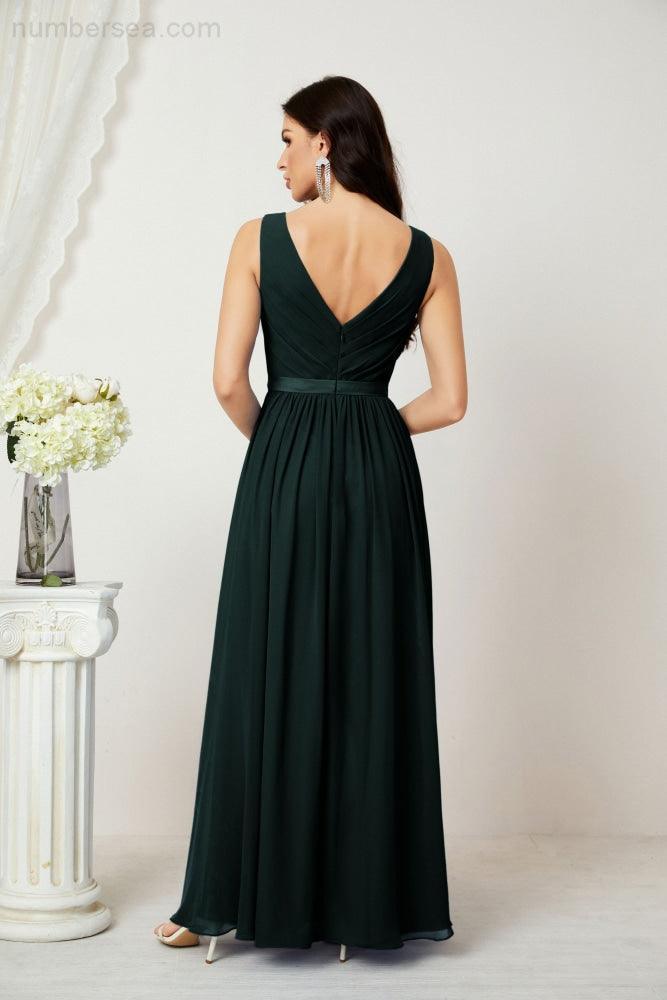 Women's Chiffon Long Bridesmaid Dresses A line Sleeveless Formal Prom Gown for Evening Party Homecoming Dresses 2808
