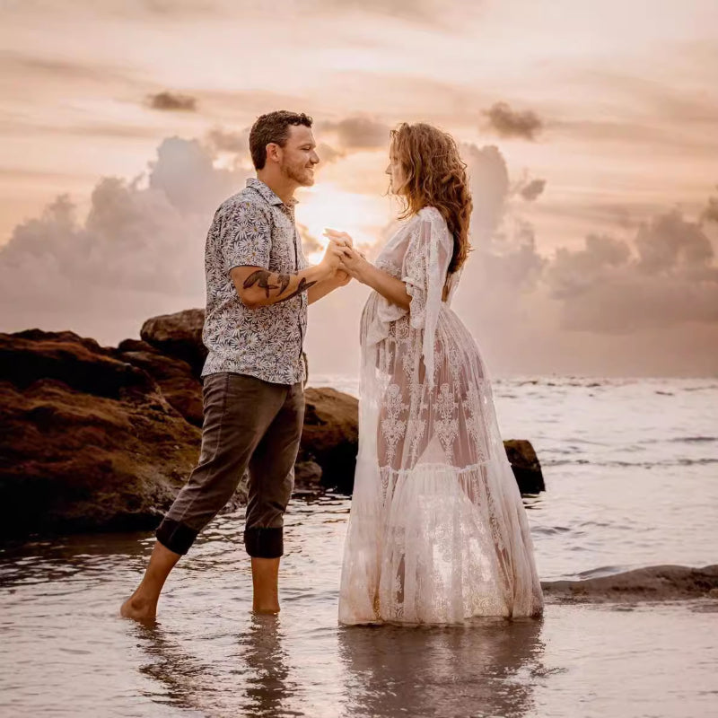 Haz que tu día especial sea aún más especial con este elegante vestido de novia de encaje color marfil con corte sirena. Con un escote impactante y una falda de estilo bohemio, este exquisito vestido de novia para bodas en la playa sin duda...