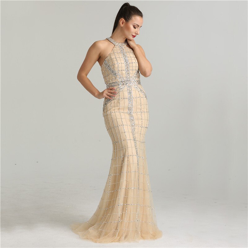 ¡En oferta! Sin devoluciones ni reembolsos. Vestidos de noche de sirena, sexis y elegantes, con cuello halter y pedrería. Foto real LA6124