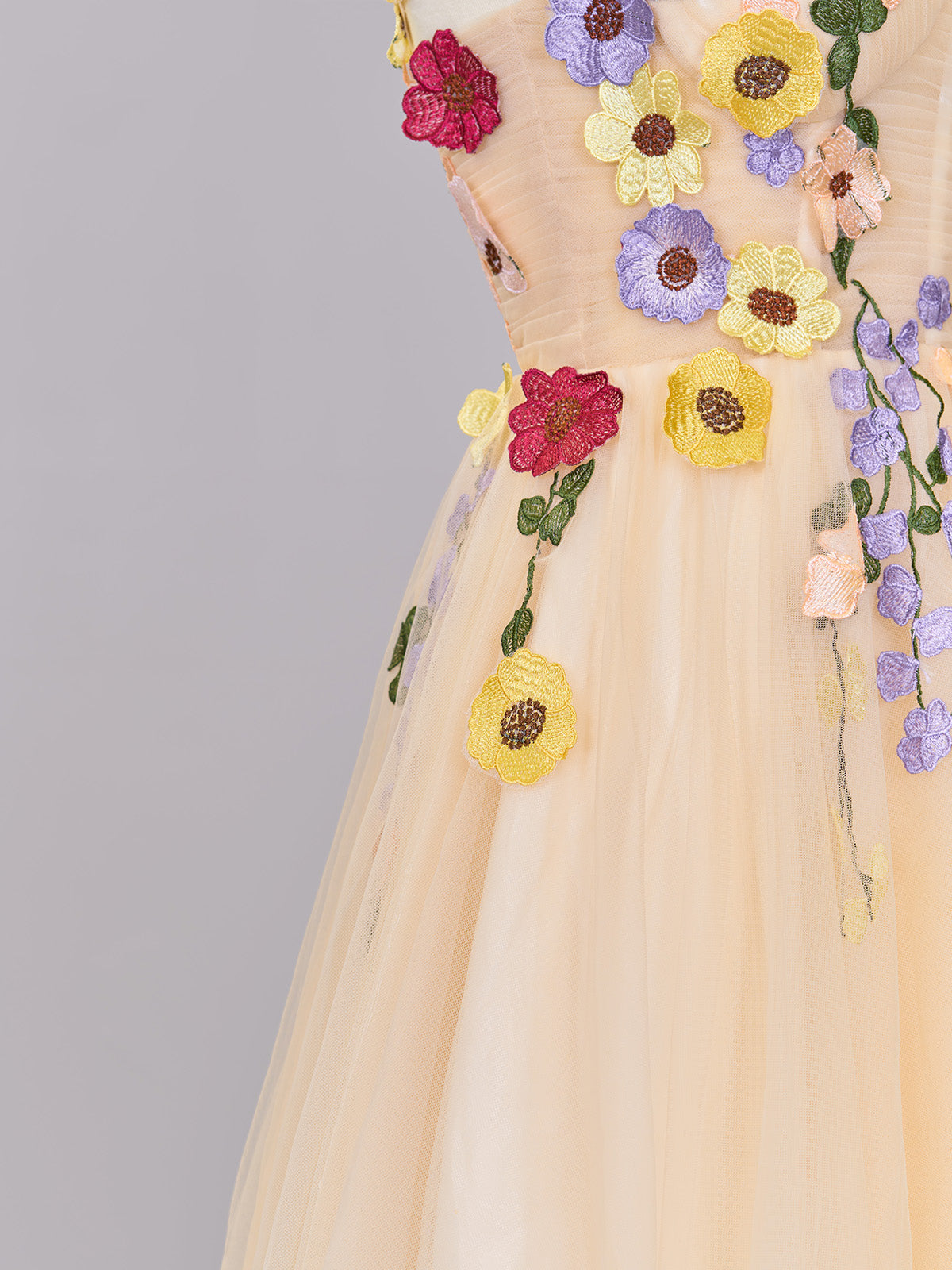 Realza tu experiencia de baile de bienvenida conQuinta, un vestido que promete robar miradas y conquistar corazones. Confeccionado en tul ligero, este vestido luce un precioso diseño floral en 3D que te hará lucir espectacular. El escote corazón es un sutil guiño al romance, mientras que su diseño sin mangas te permite bailar toda la noche sin esfuerzo. ¿La joya de la corona? Un delicado bordado, salpicado de impresionantes flores en 3D, que te transporta a un mundo de cuentos de hadas. La espalda con cordones garantiza un ajuste perfecto, realzando tu figura en los puntos clave. ConQuinta, no solo asistes al baile de bienvenida; creas recuerdos inolvidables.