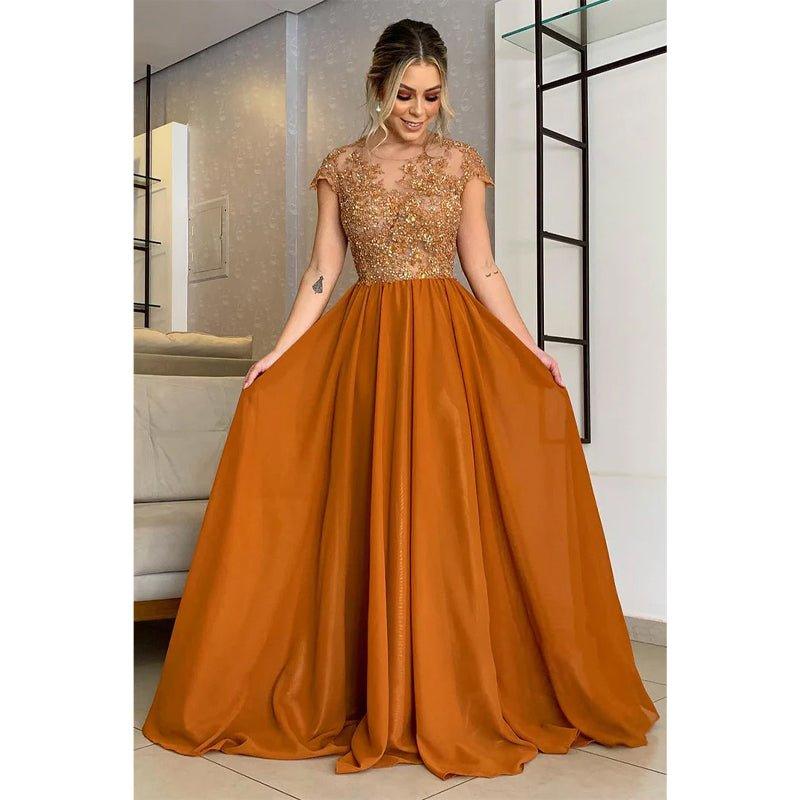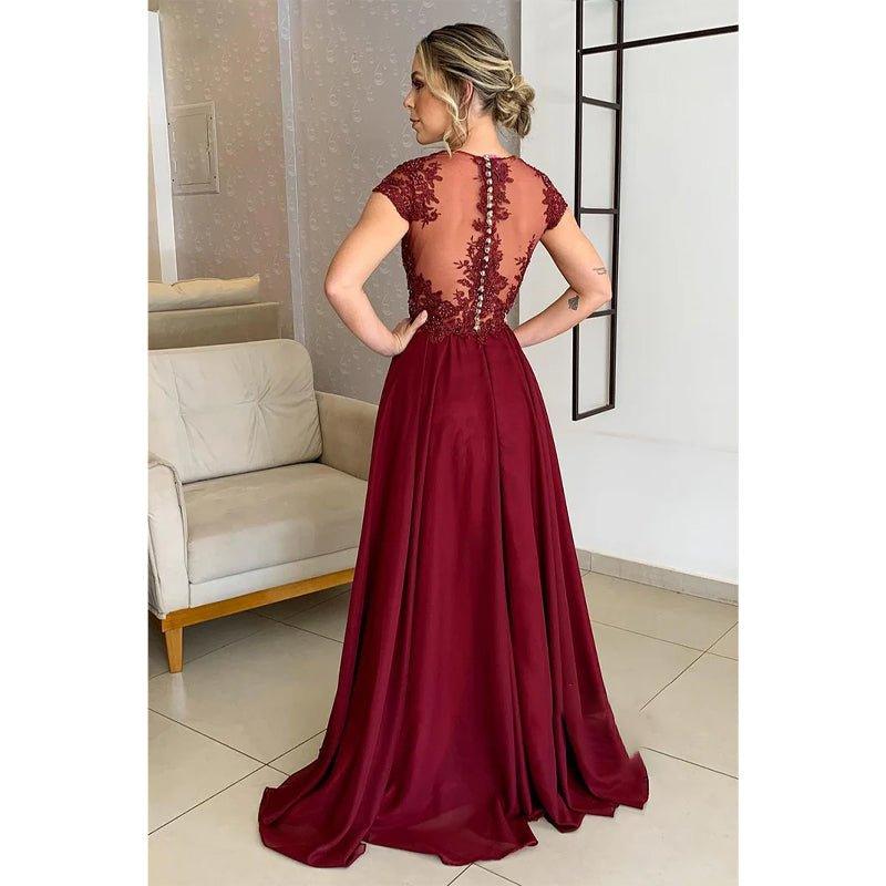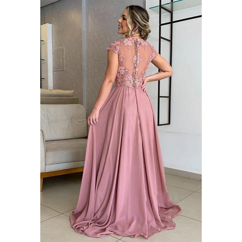 Vestido largo de corte A con apliques de encaje y mangas cortas para la madre de la novia