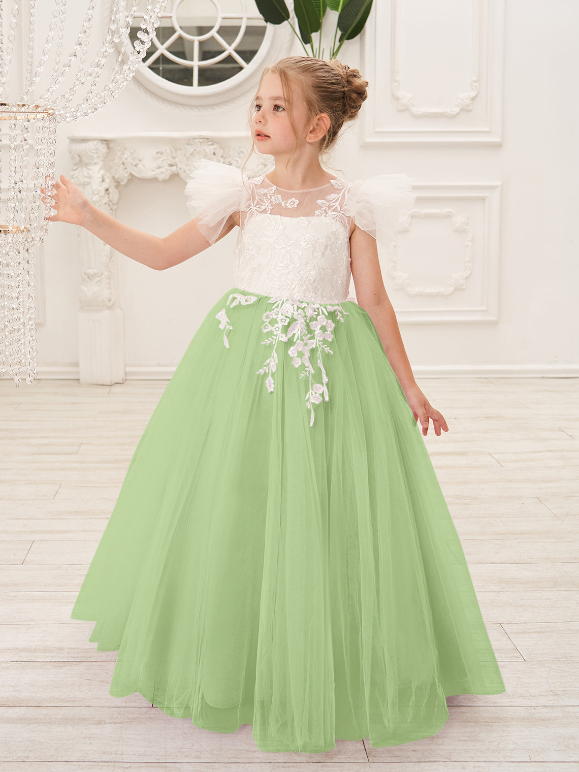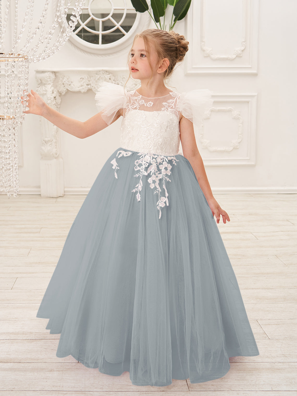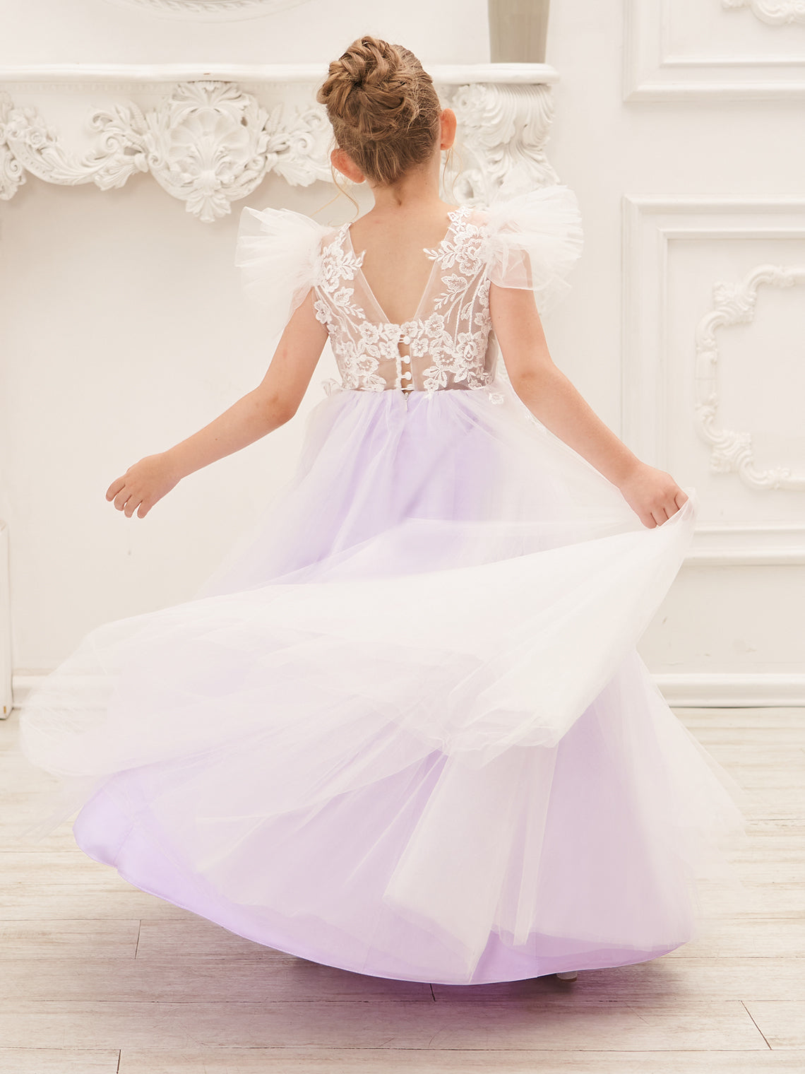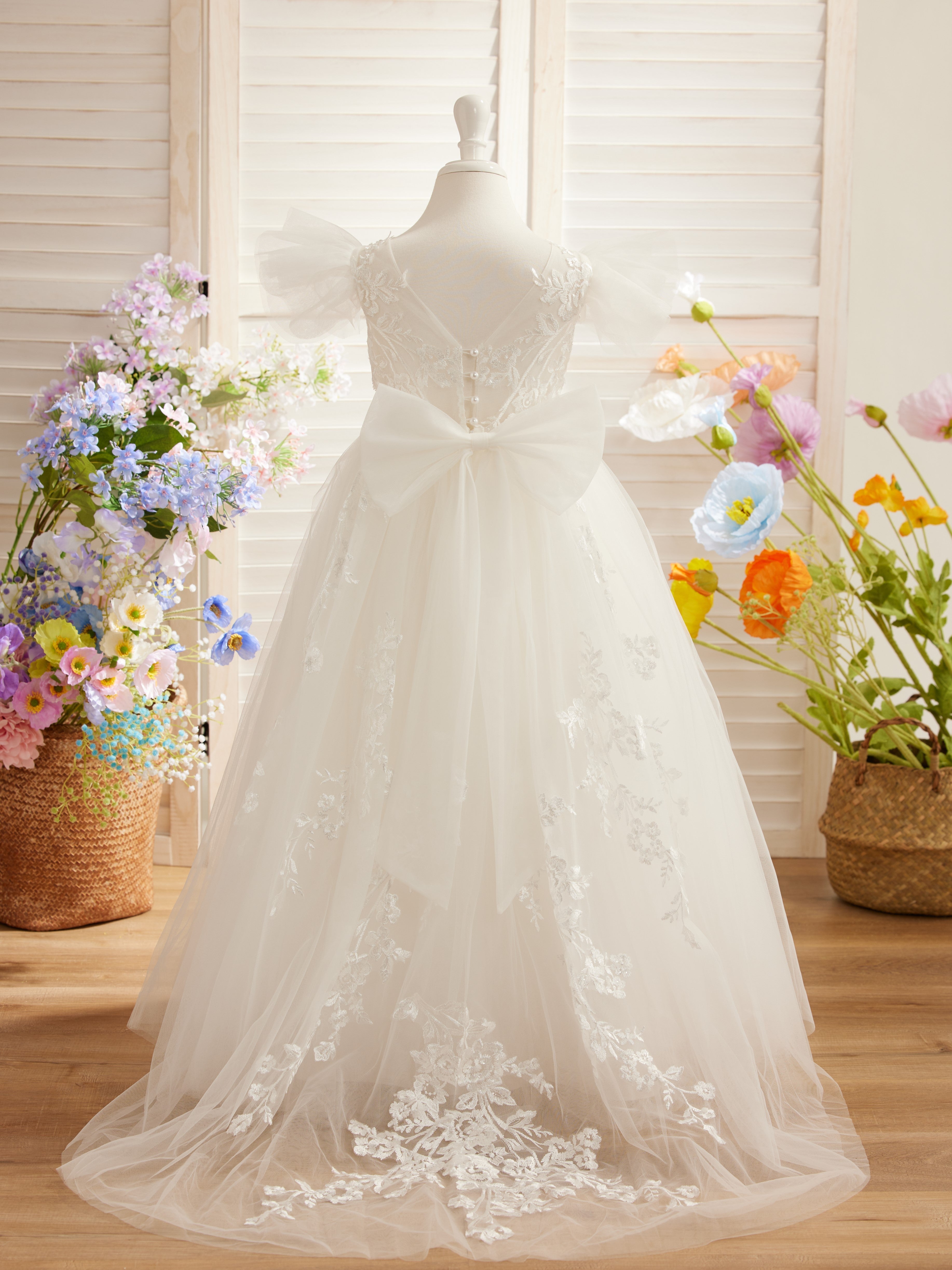 Vestido de niña de las flores con cola de tul y encaje desmontable