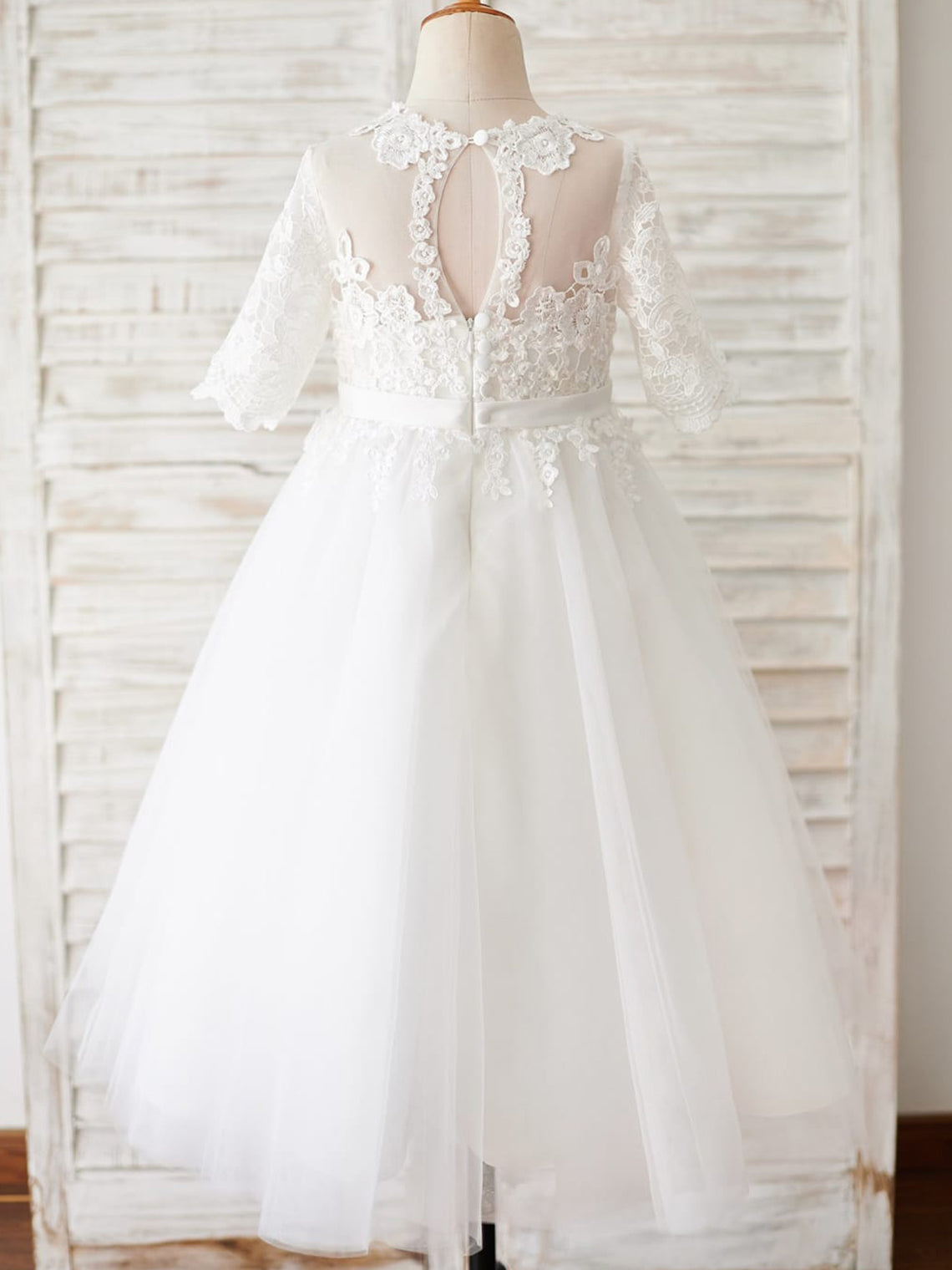 Vestido de niña de las flores para la Primera Comunión, corte en A, de encaje y tul, hasta el suelo