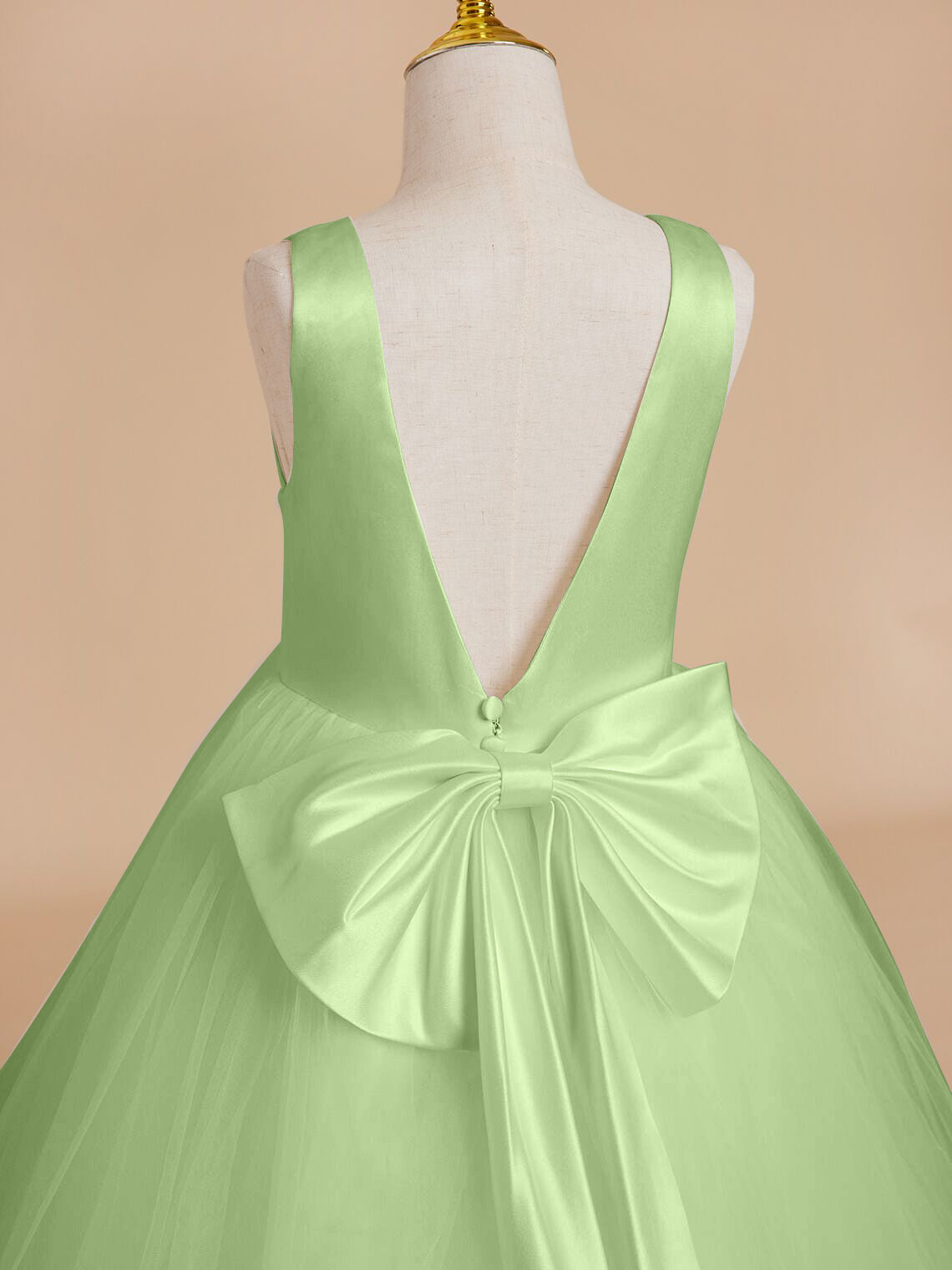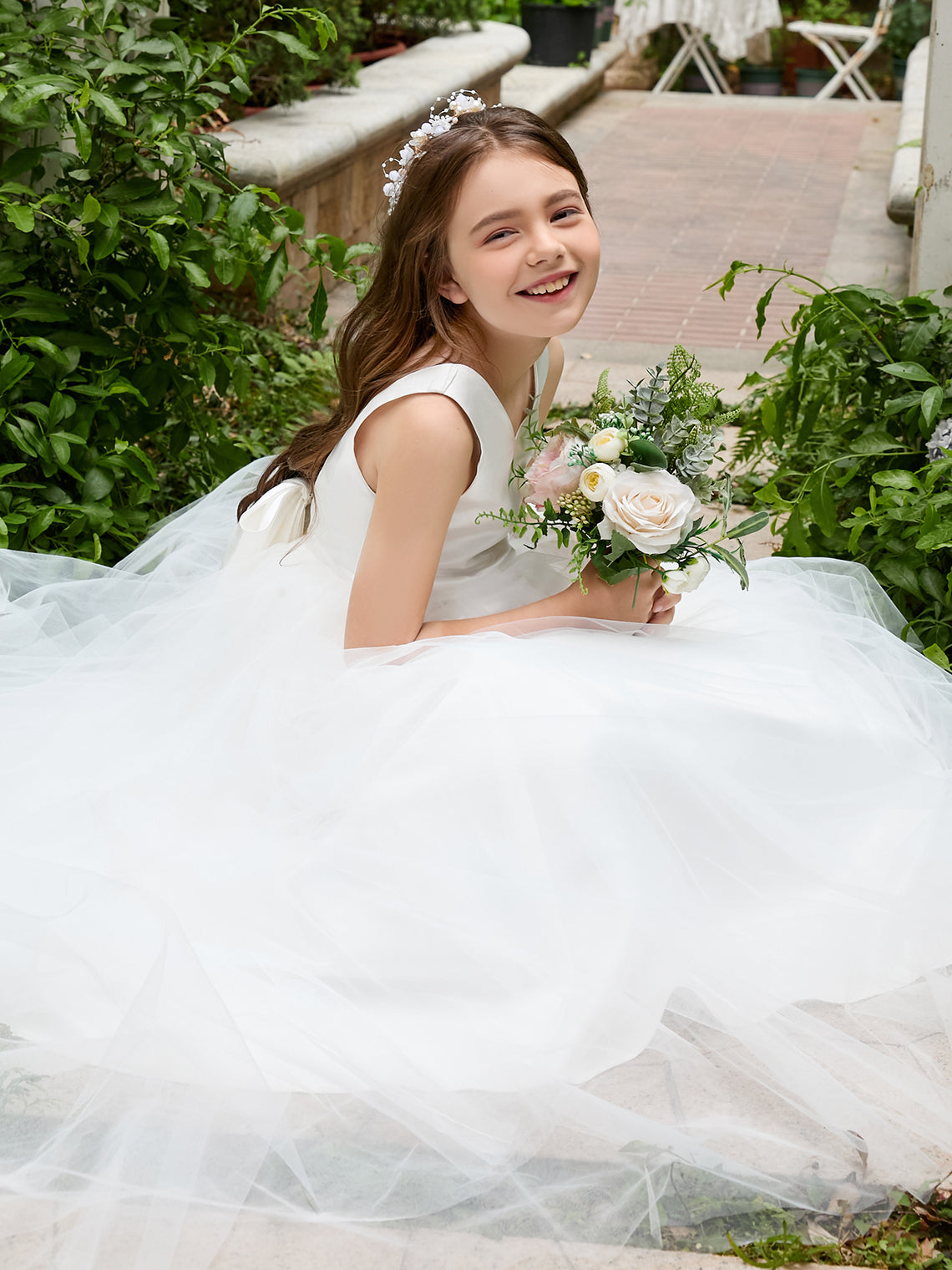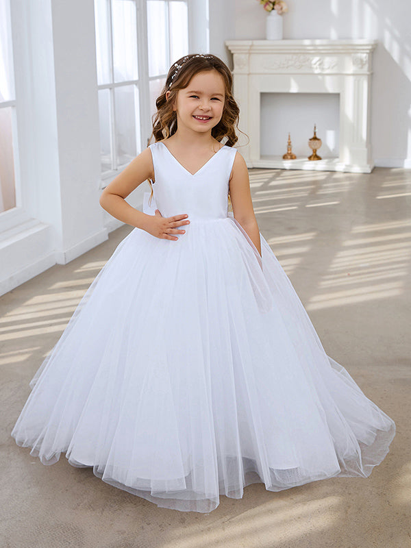 Vestido clásico blanco de corte A sin mangas para niña de las flores, de satén y tul