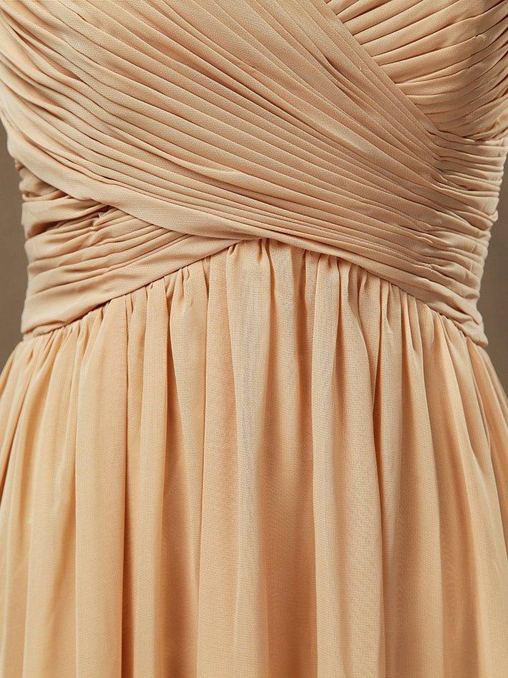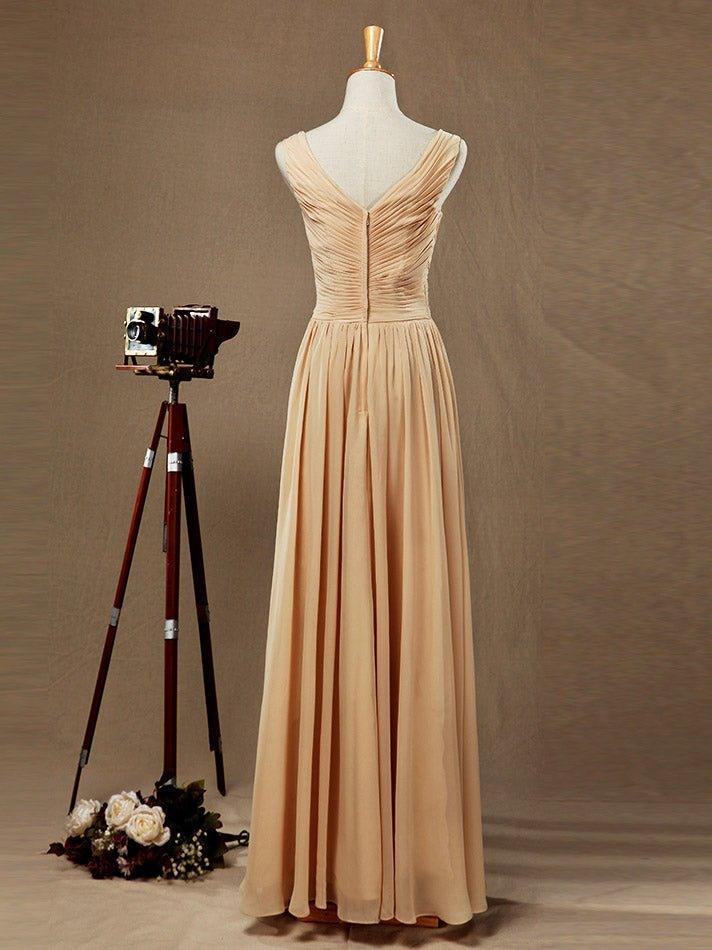 1. Información del artículo: Vestido de dama de honor de gasa con escote en V, corte princesa, largo hasta el suelo, con pliegues entrecruzados. Hecho a pedido.