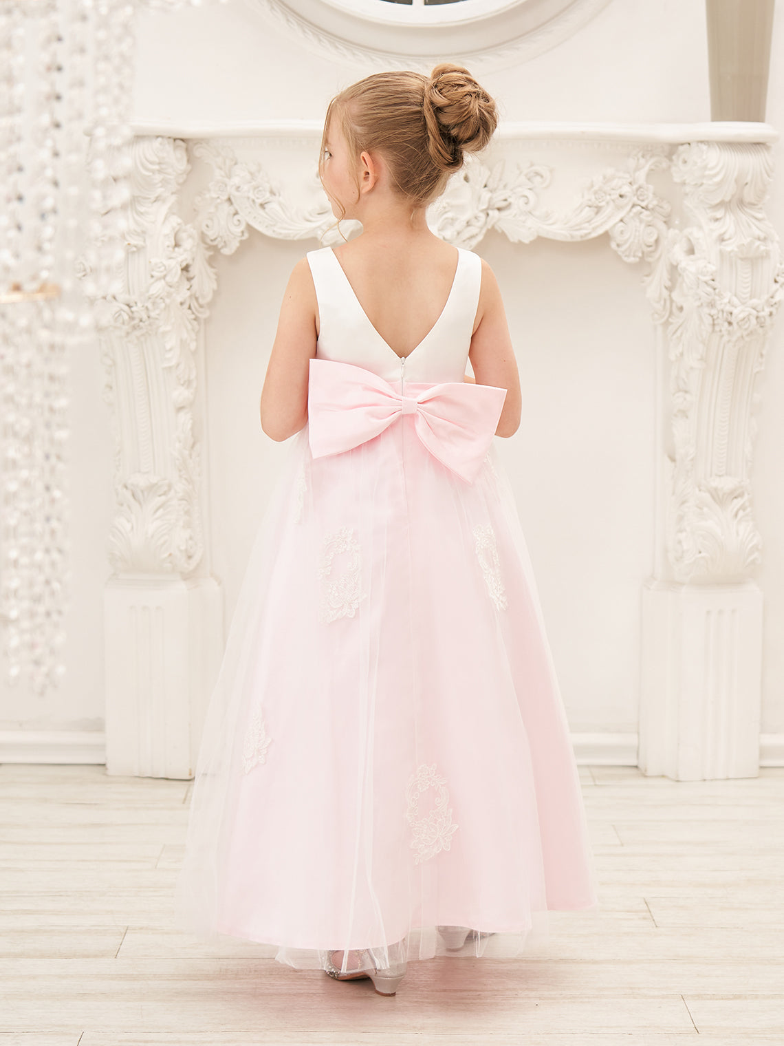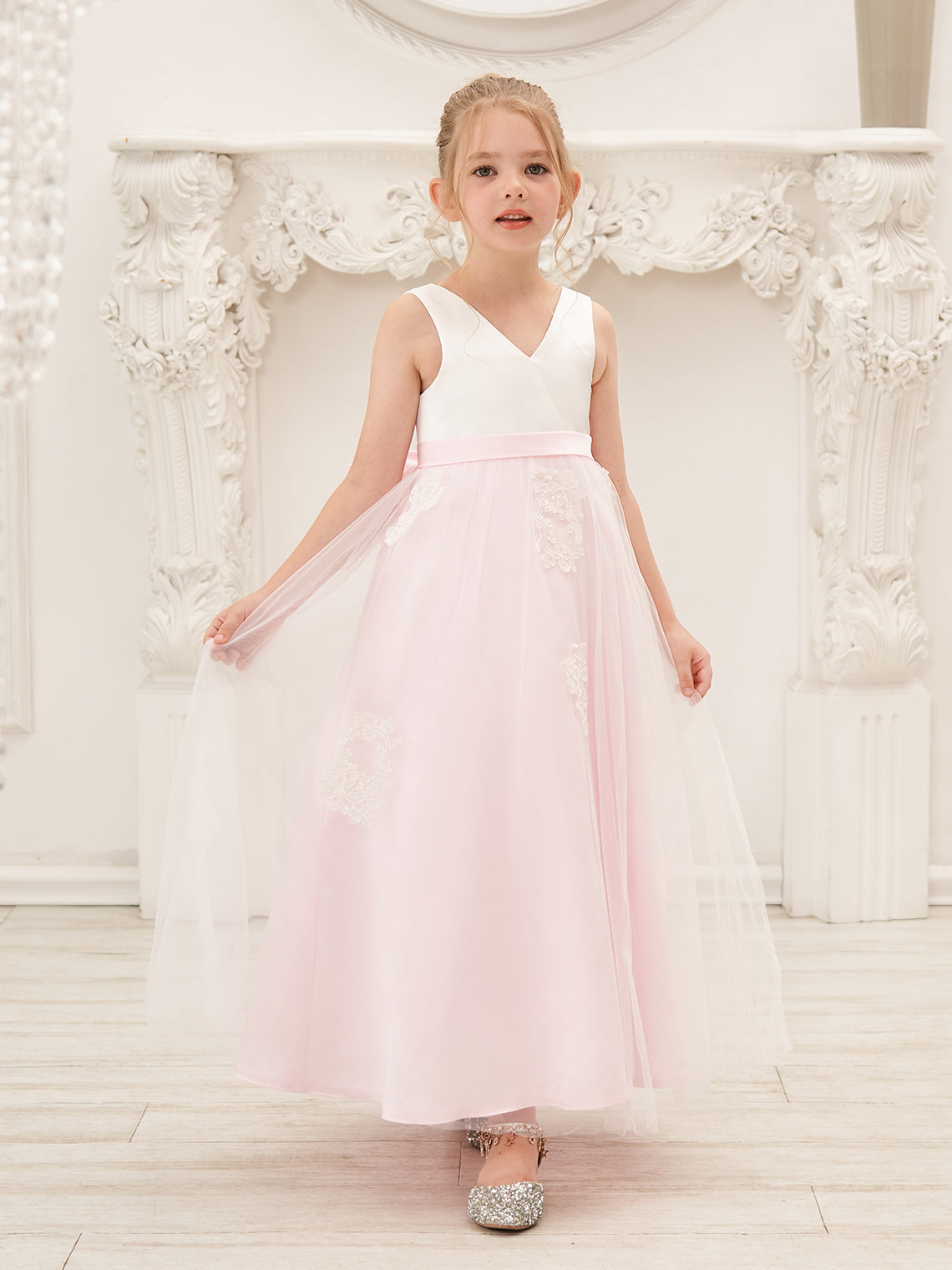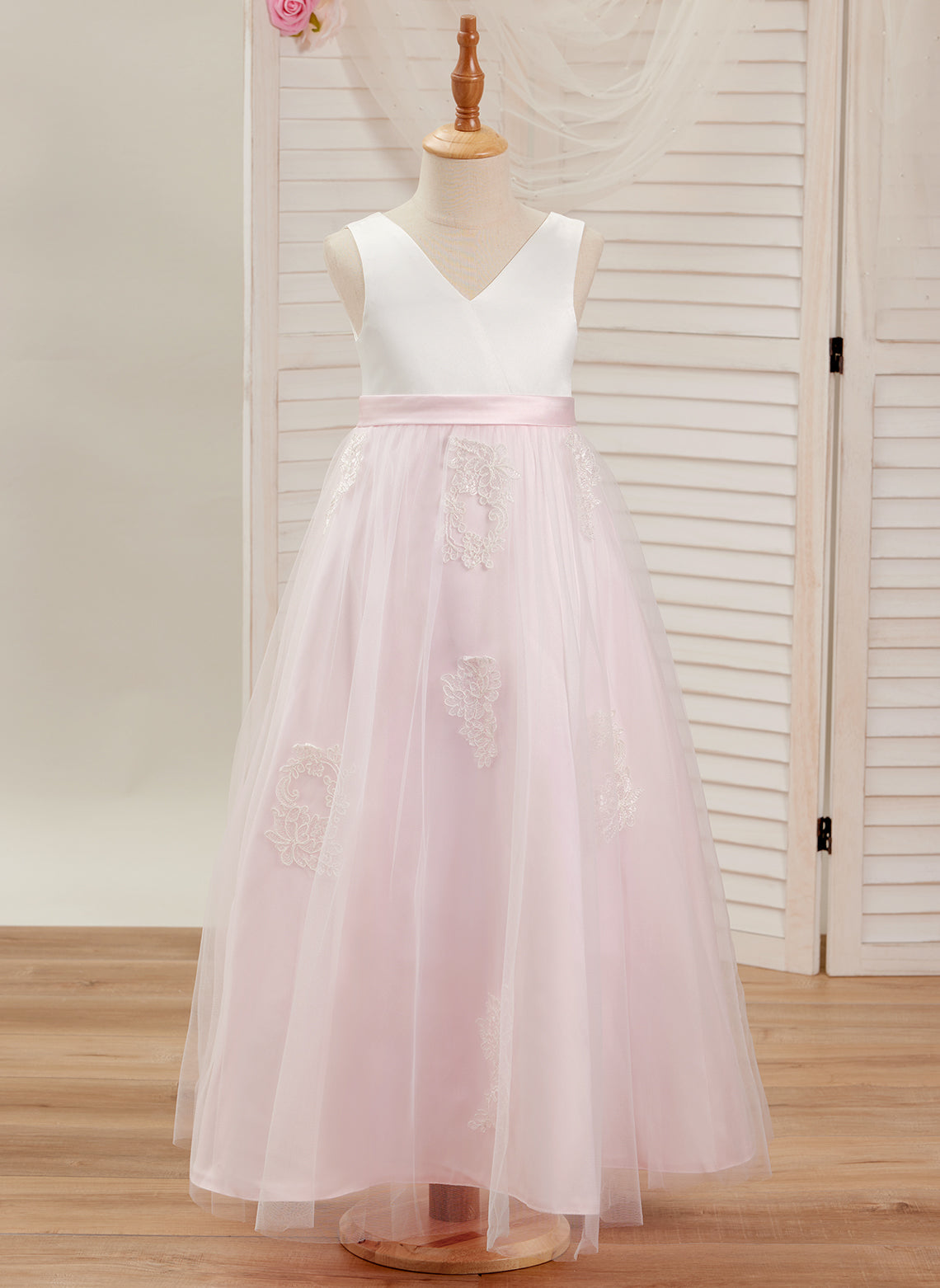 Vestido rosa de corte A, largo hasta el tobillo, de tul satinado (2003227111)
