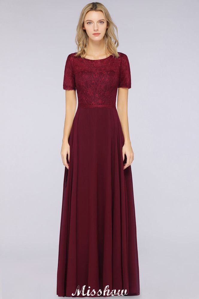 Código del artículo: D154788781107721 Catálogo: Vestidos de dama de honor Detalles de la espalda: Cremallera Temporada: Primavera.Verano.Otoño.Invierno Escote: Joya Material: Gasa 100D. Encaje Silueta: Línea A Estilo: Elegante Tipo de cuerpo: Señorita Largo de manga: Manga corta Cintura: Natural Largo del dobladillo: Hasta el suelo Adorno: Encaje