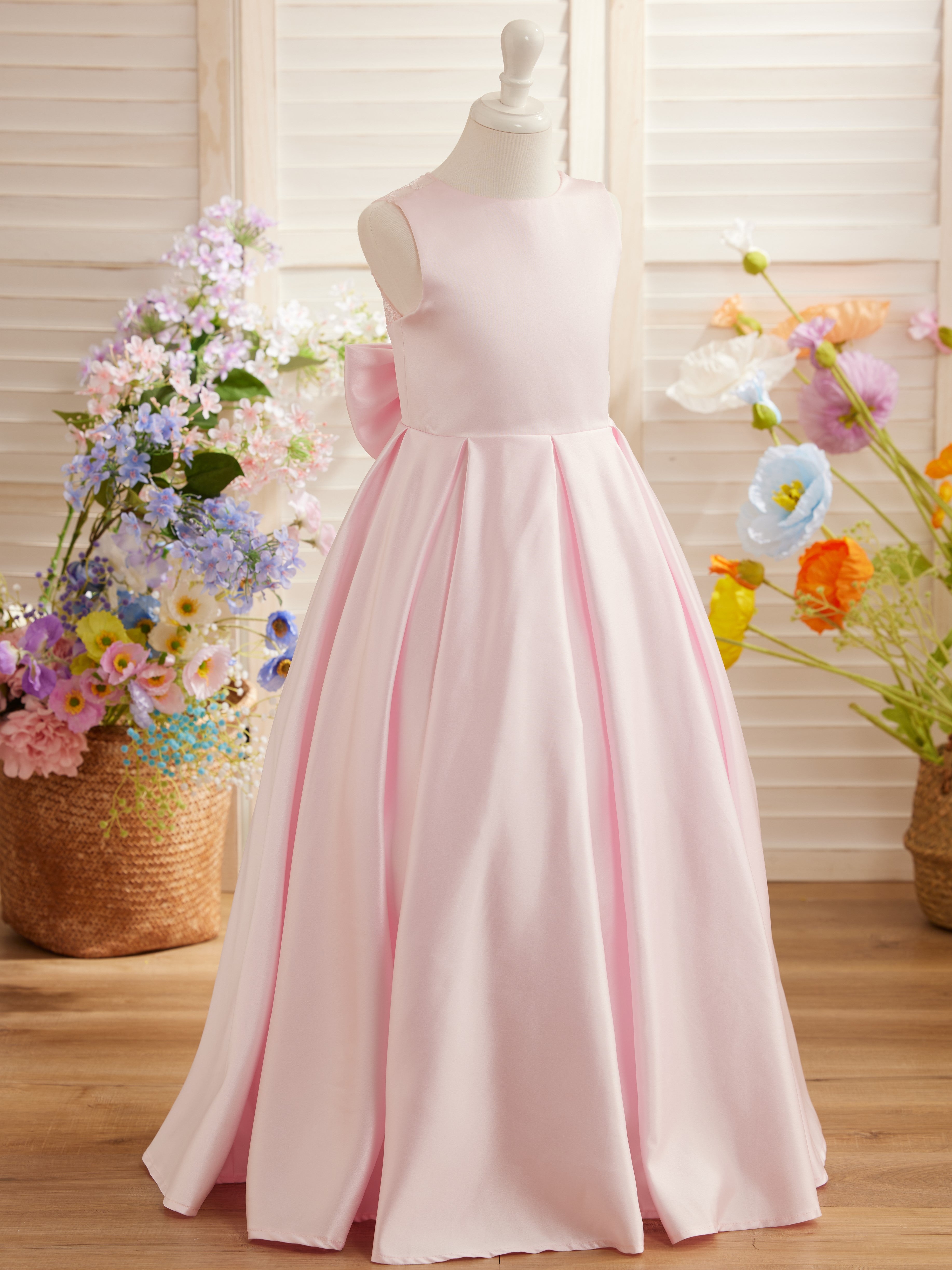 Vestido de niña de las flores para la Primera Comunión, corte en A, encaje y satén, hasta el suelo