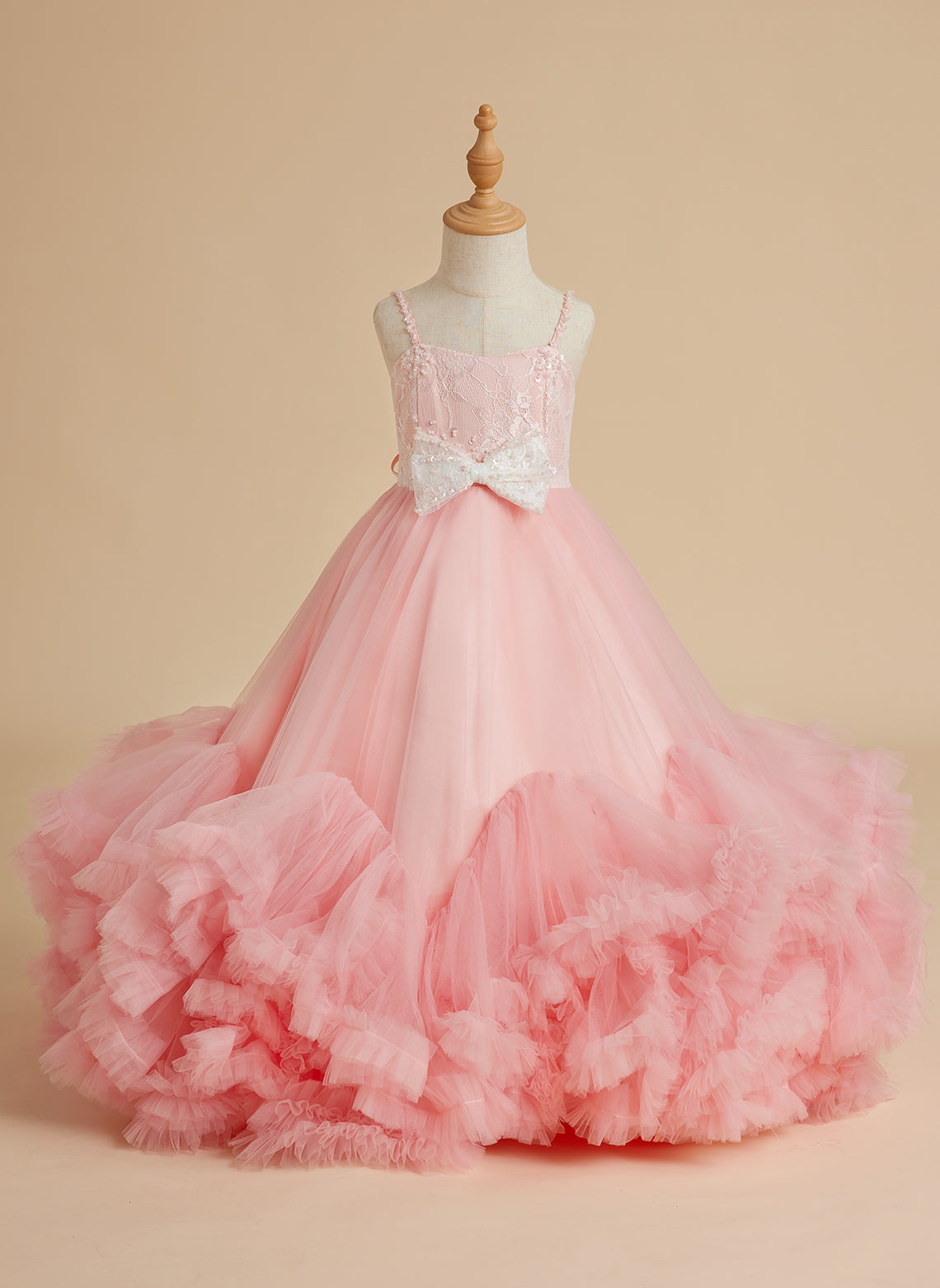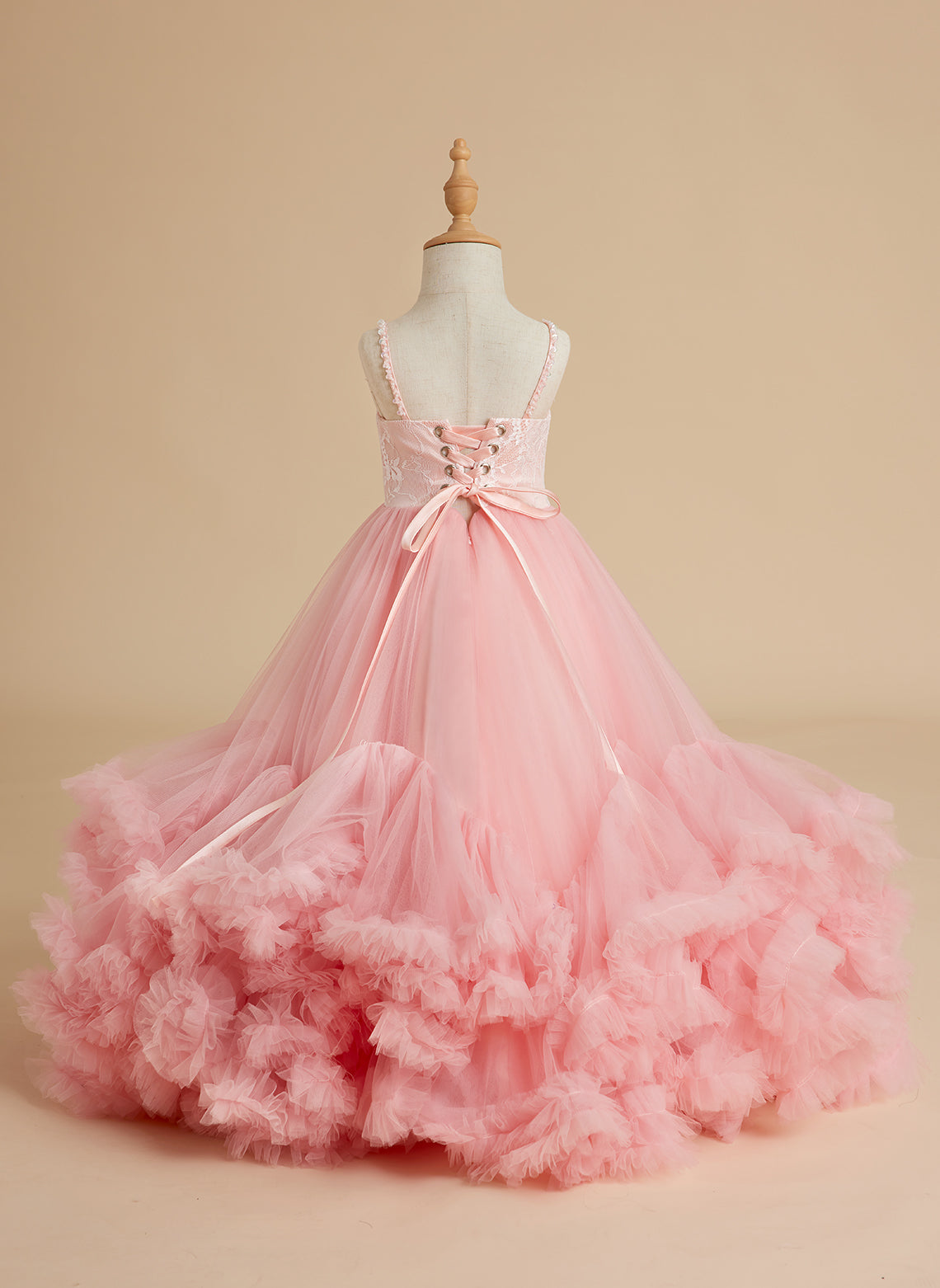Vestido rosa de tul hasta el suelo para niña de las flores