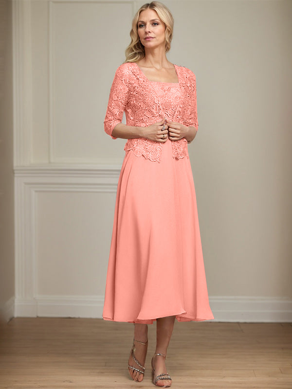 Vestido de corte A, largo midi, de gasa, encaje y lentejuelas para la madre de la novia.