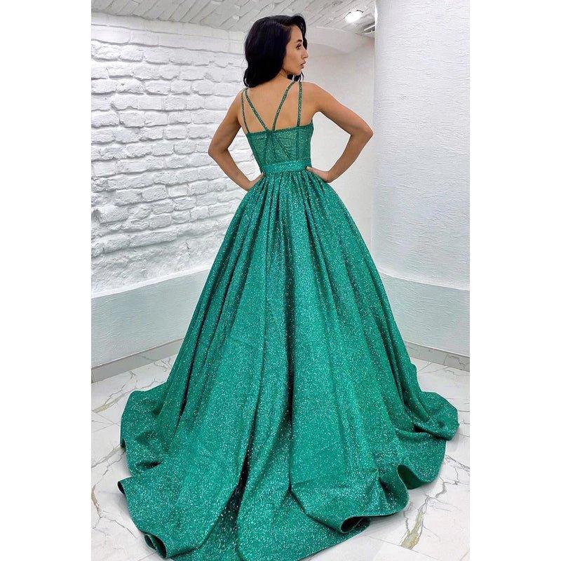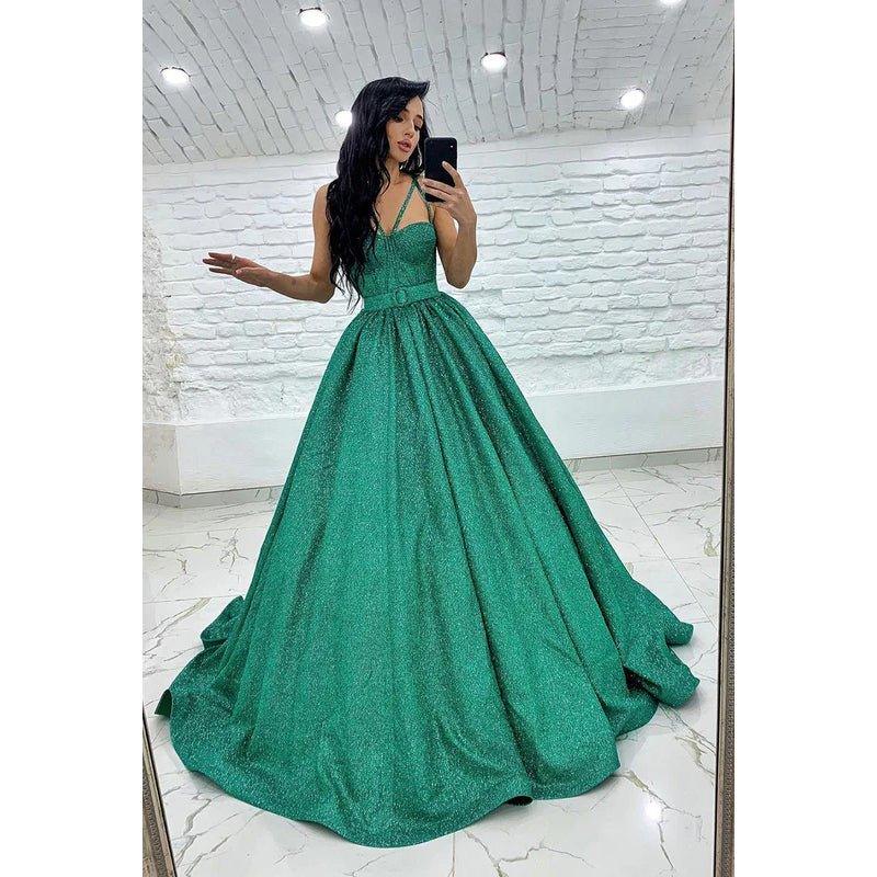 Vestido de fiesta sin mangas con tirantes, cinturón de lentejuelas y corte en A