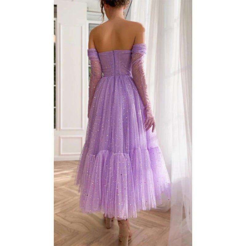 Vestido de graduación vintage de corte línea A con escote corazón, pliegues y mangas largas