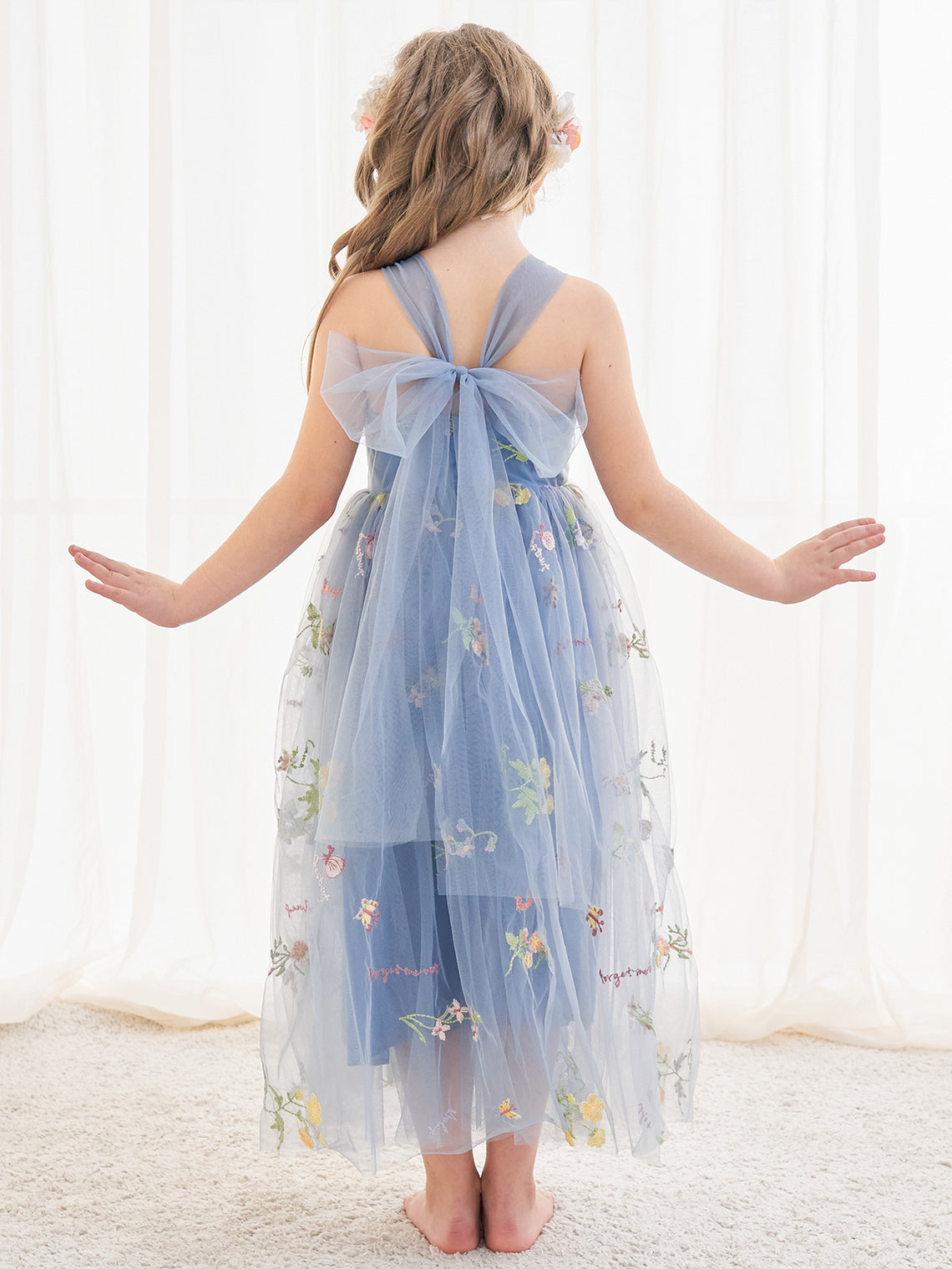 Vestido azul de tul hasta el tobillo, corte en A (2003227598)