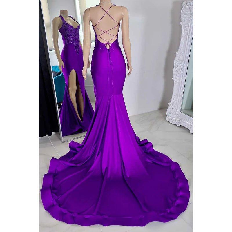 Vestido de fiesta de graduación con tirantes finos asimétricos, apliques de cuentas y abertura lateral