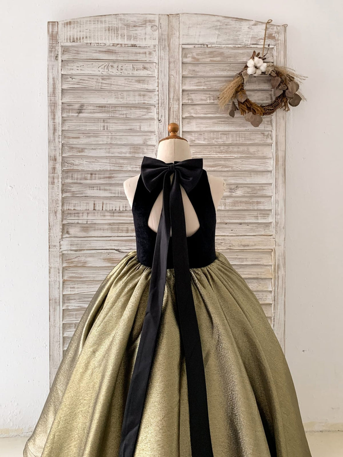 Vestido de gala/princesa de terciopelo jacquard con cola de barrido negro (2003227667)
