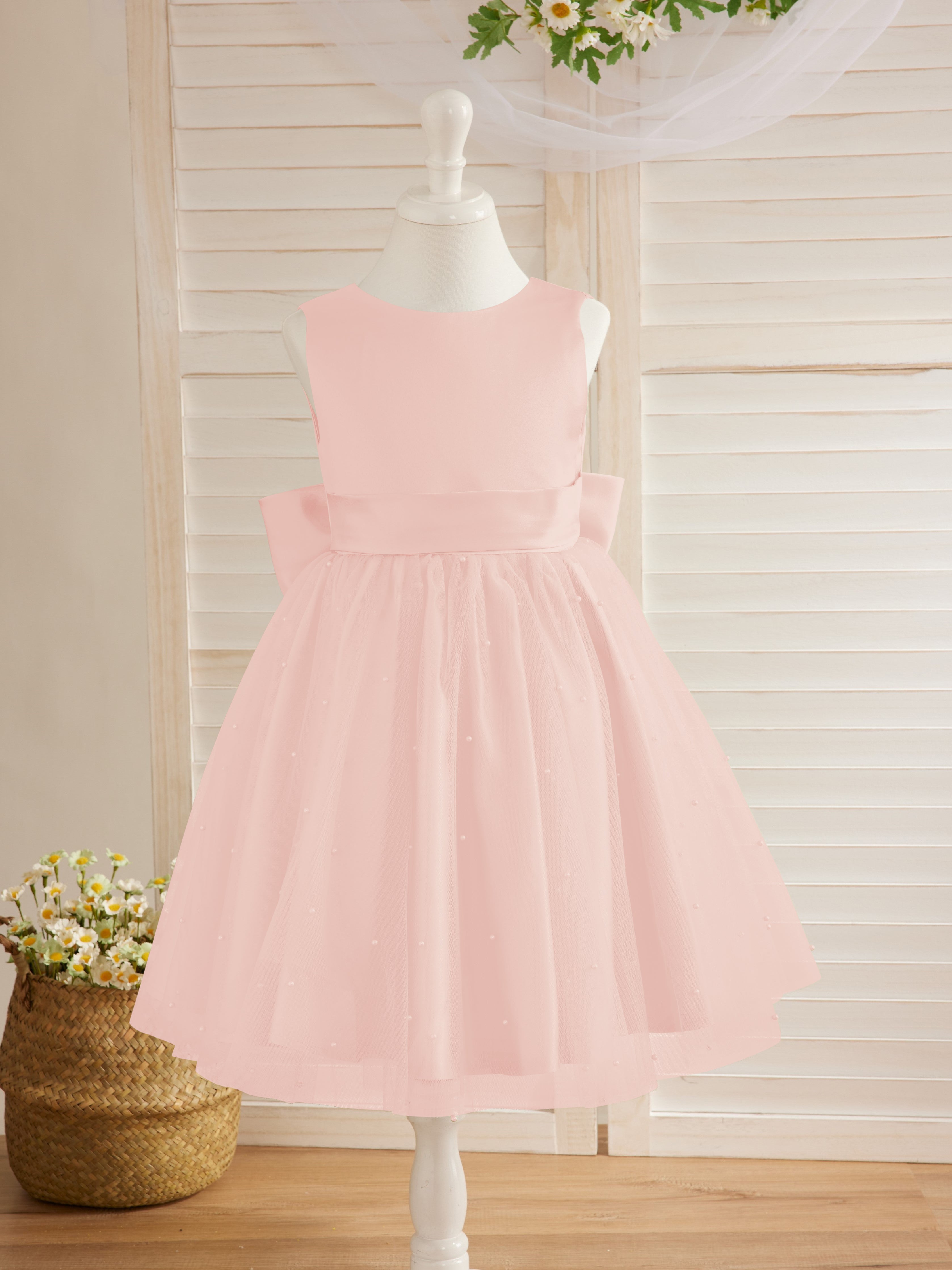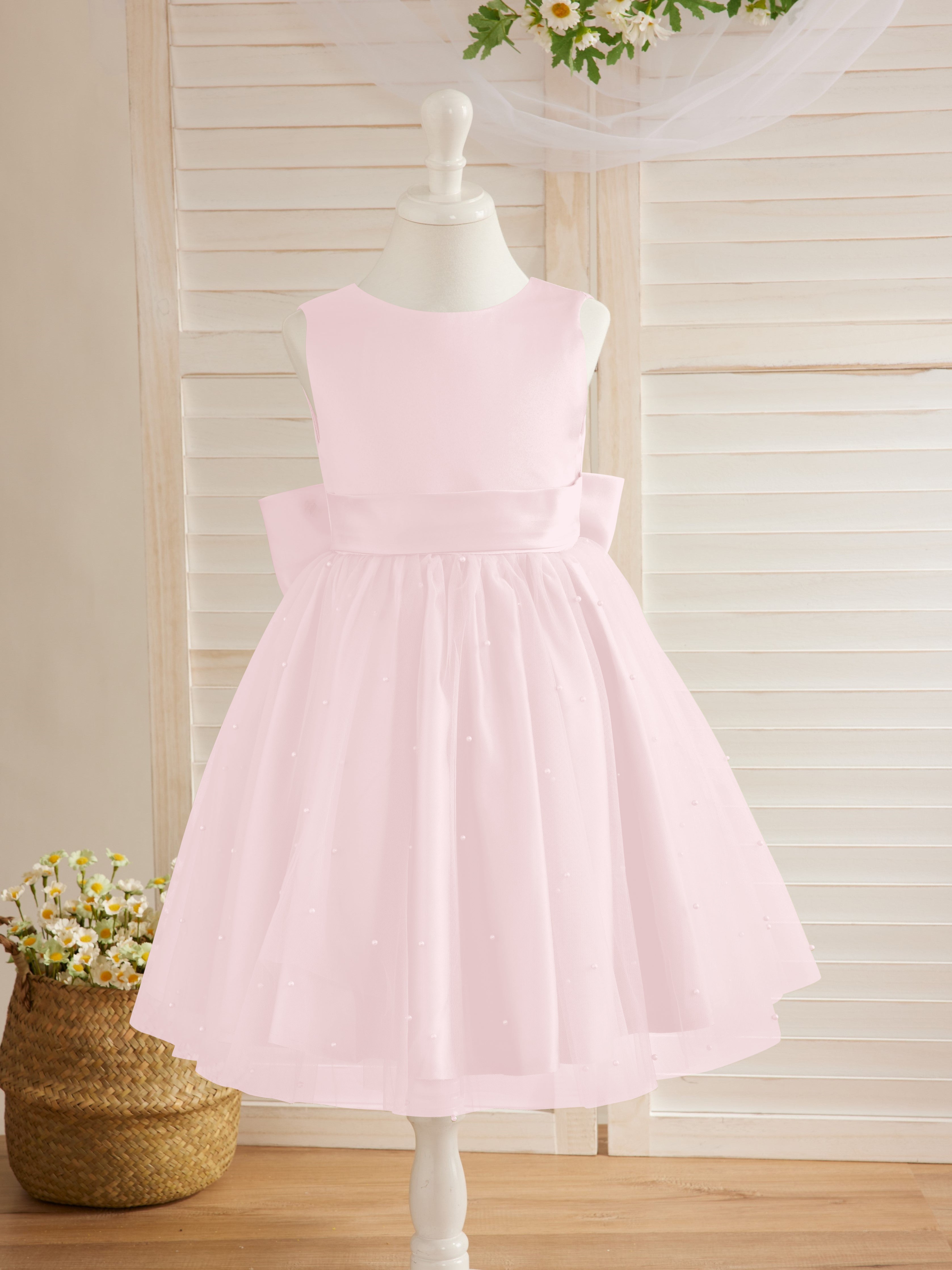 Vestido de princesa/vestido de princesa de satén y tul hasta la rodilla para niña de las flores
